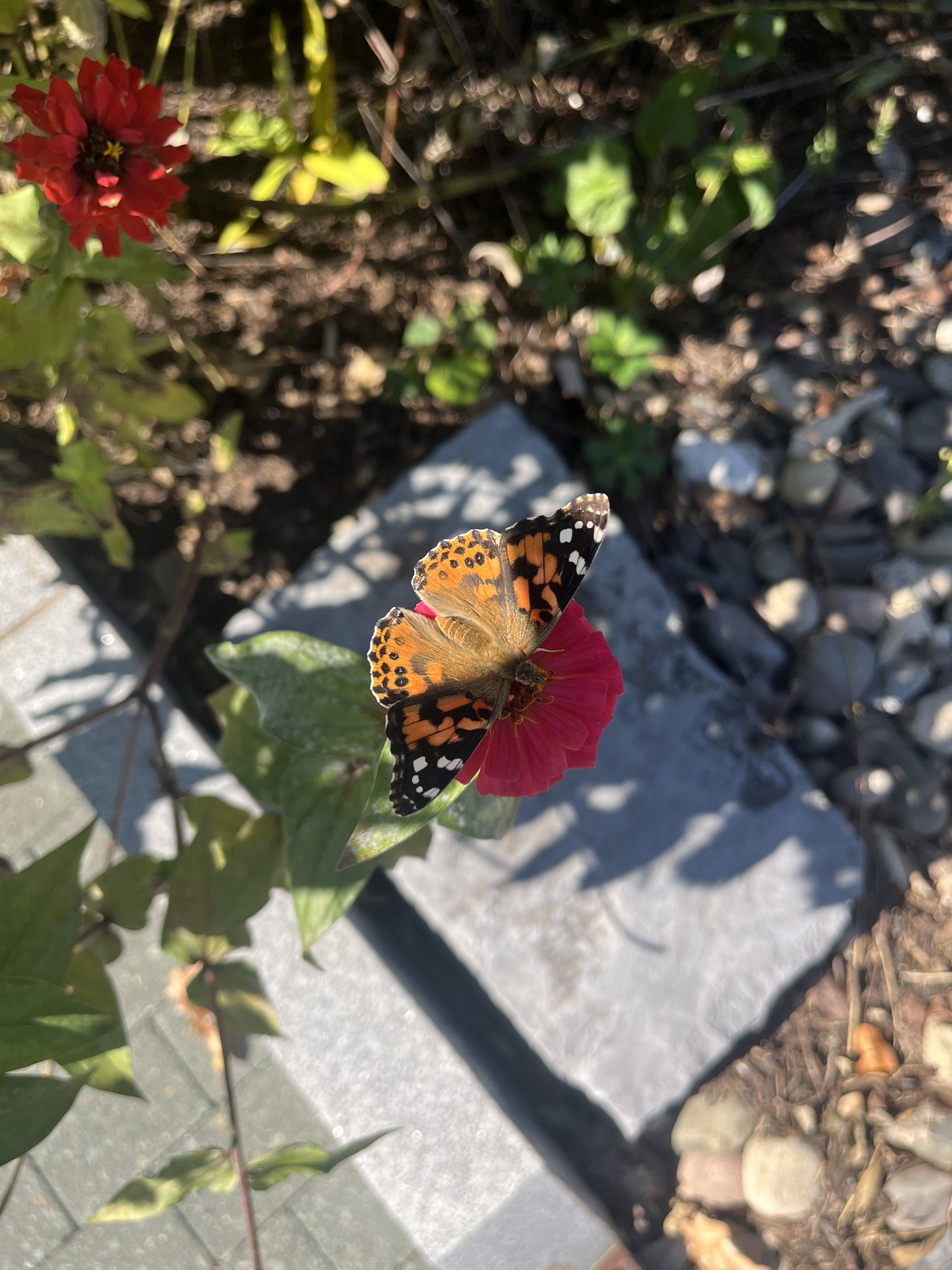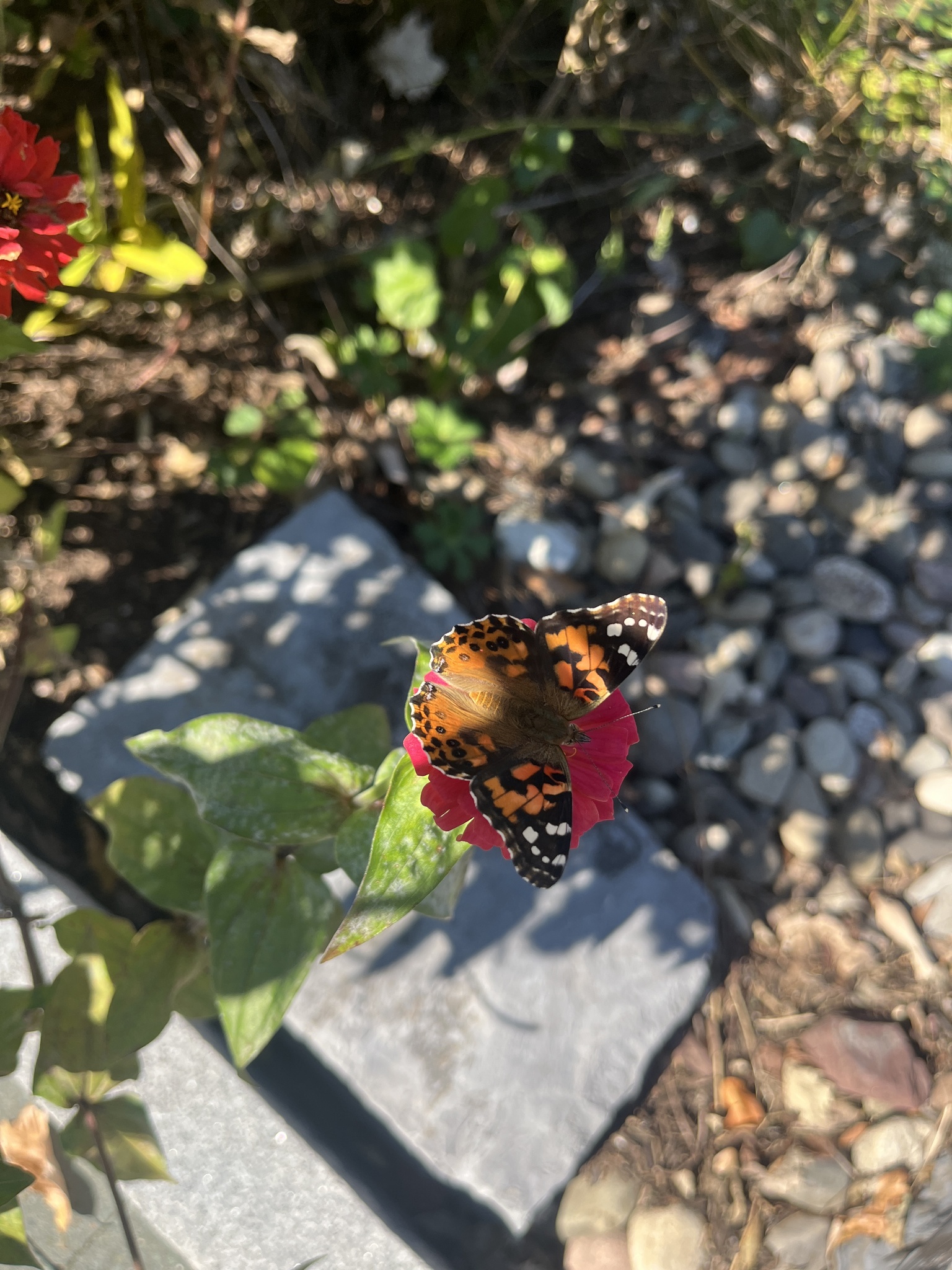 Vanessa cardui | species | Zinnia | genus | visitsFlowersOf | Animalia | Arthropoda | Insecta | Lepidoptera | Nymphalidae | Vanessa | Plantae | Tracheophyta | Magnoliopsida | Asterales | Asteraceae | Zinnia | 40.205095 | -77.19932 | 2024 | 10 | 11 | http://creativecommons.org/licenses/by-nc/4.0/ | https://www.inaturalist.org/observations/246963920 | |