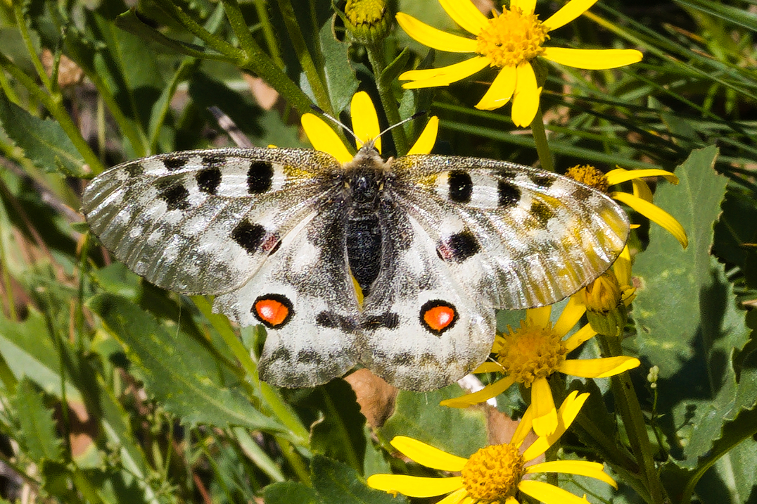 Parnassius apollo | species | Senecio | genus | visits | Animalia | Arthropoda | Insecta | Lepidoptera | Papilionidae | Parnassius | Plantae | Tracheophyta | Magnoliopsida | Asterales | Asteraceae | Senecio | 42.758611 | 0.89 | 2024 | 8 | 3 | http://creativecommons.org/licenses/by-nc/4.0/ | https://www.inaturalist.org/observations/246966259 | |