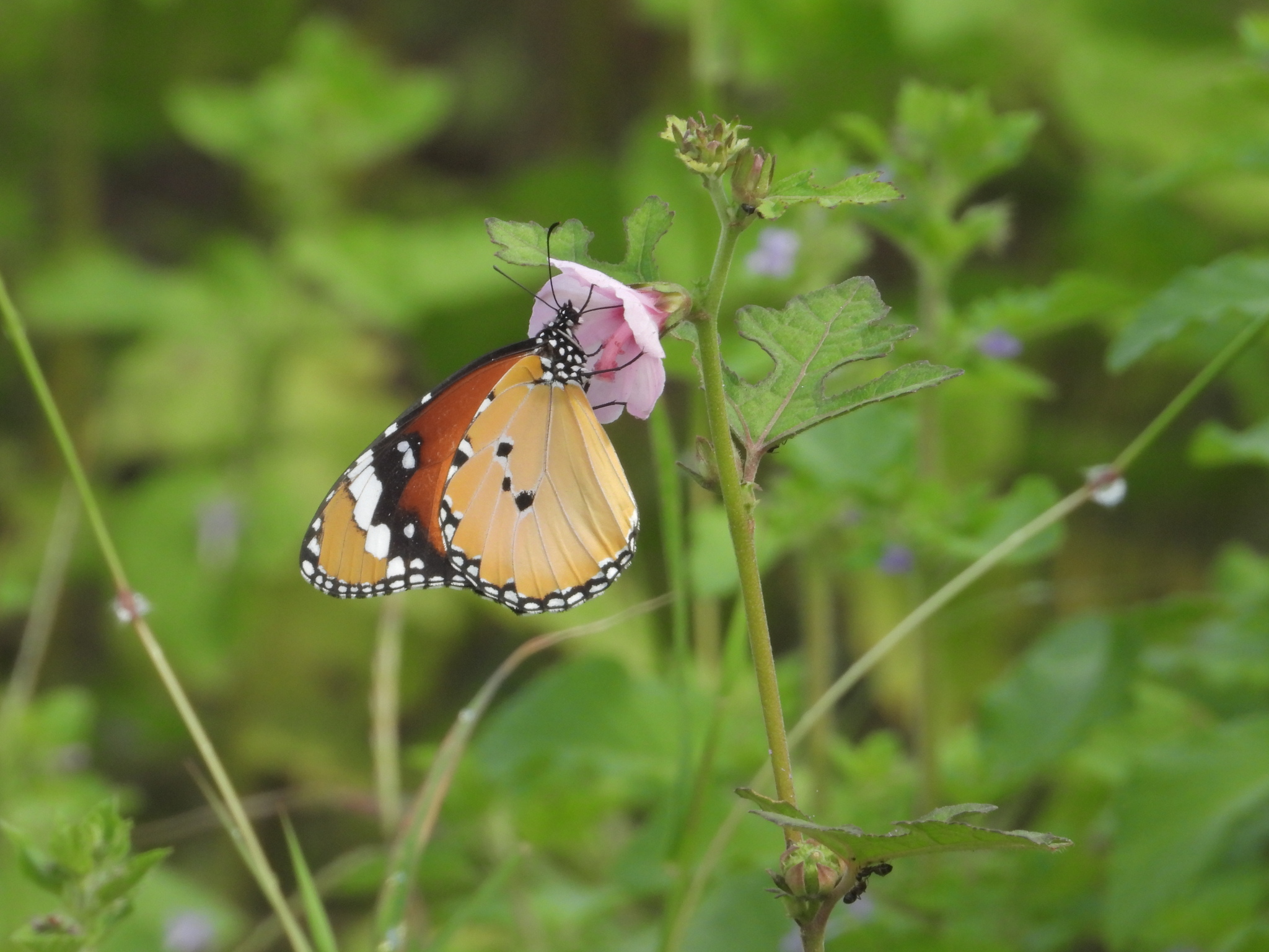 Danaus chrysippus | species | Urena lobata | species | eats | Animalia | Arthropoda | Insecta | Lepidoptera | Nymphalidae | Danaus | Plantae | Tracheophyta | Magnoliopsida | Malvales | Malvaceae | Urena | 18.564245 | 73.776851 | 2024 | 10 | 7 | http://creativecommons.org/licenses/by-nc/4.0/ | https://www.inaturalist.org/observations/246970916 | |