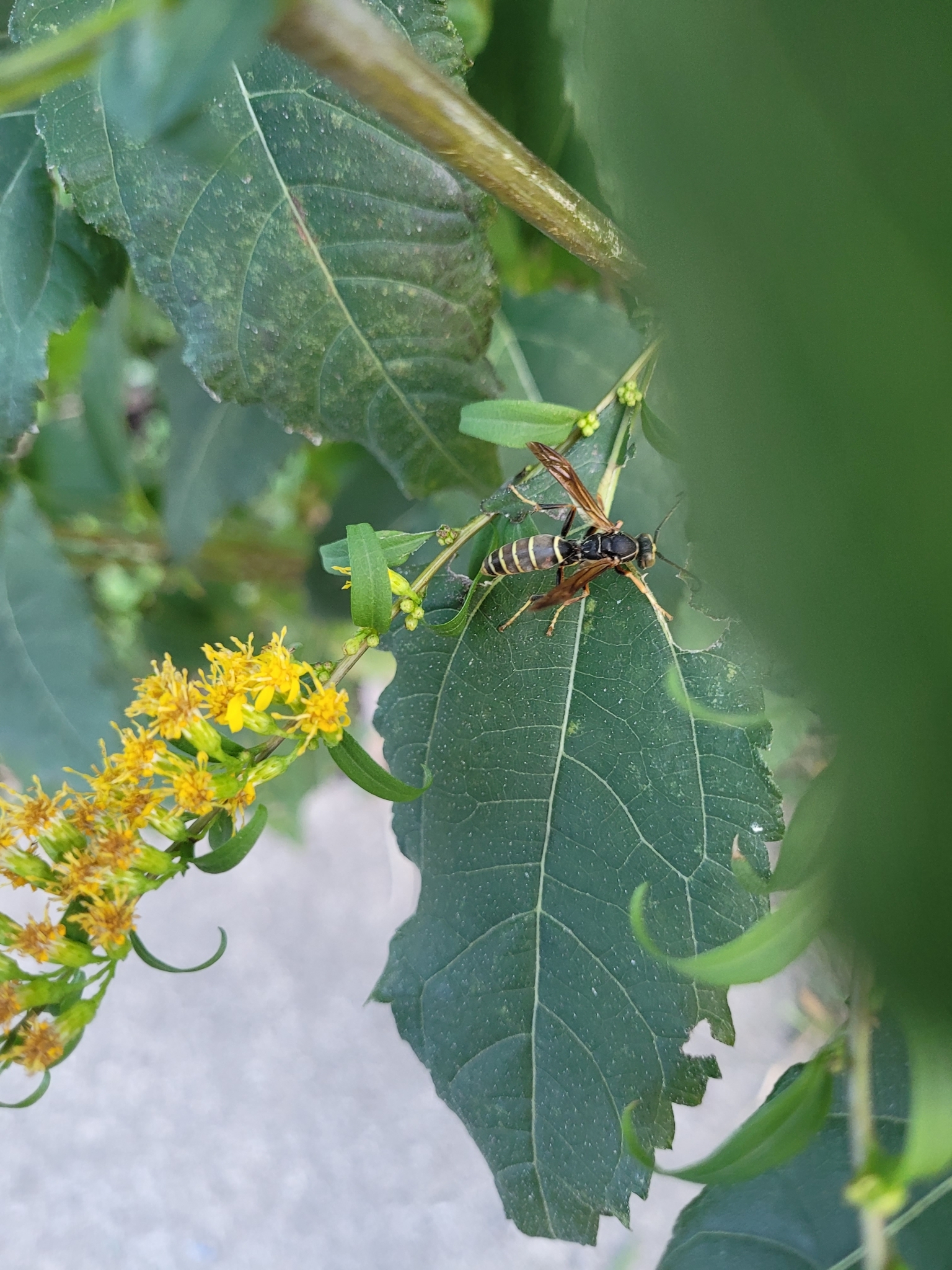 Polistes fuscatus | species | Solidago | genus | visitsFlowersOf | Animalia | Arthropoda | Insecta | Hymenoptera | Eumenidae | Polistes | Plantae | Tracheophyta | Magnoliopsida | Asterales | Asteraceae | Solidago | 42.331212 | -71.03207 | 2024 | 10 | 12 | http://creativecommons.org/licenses/by-nc/4.0/ | https://www.inaturalist.org/observations/246977408 | |