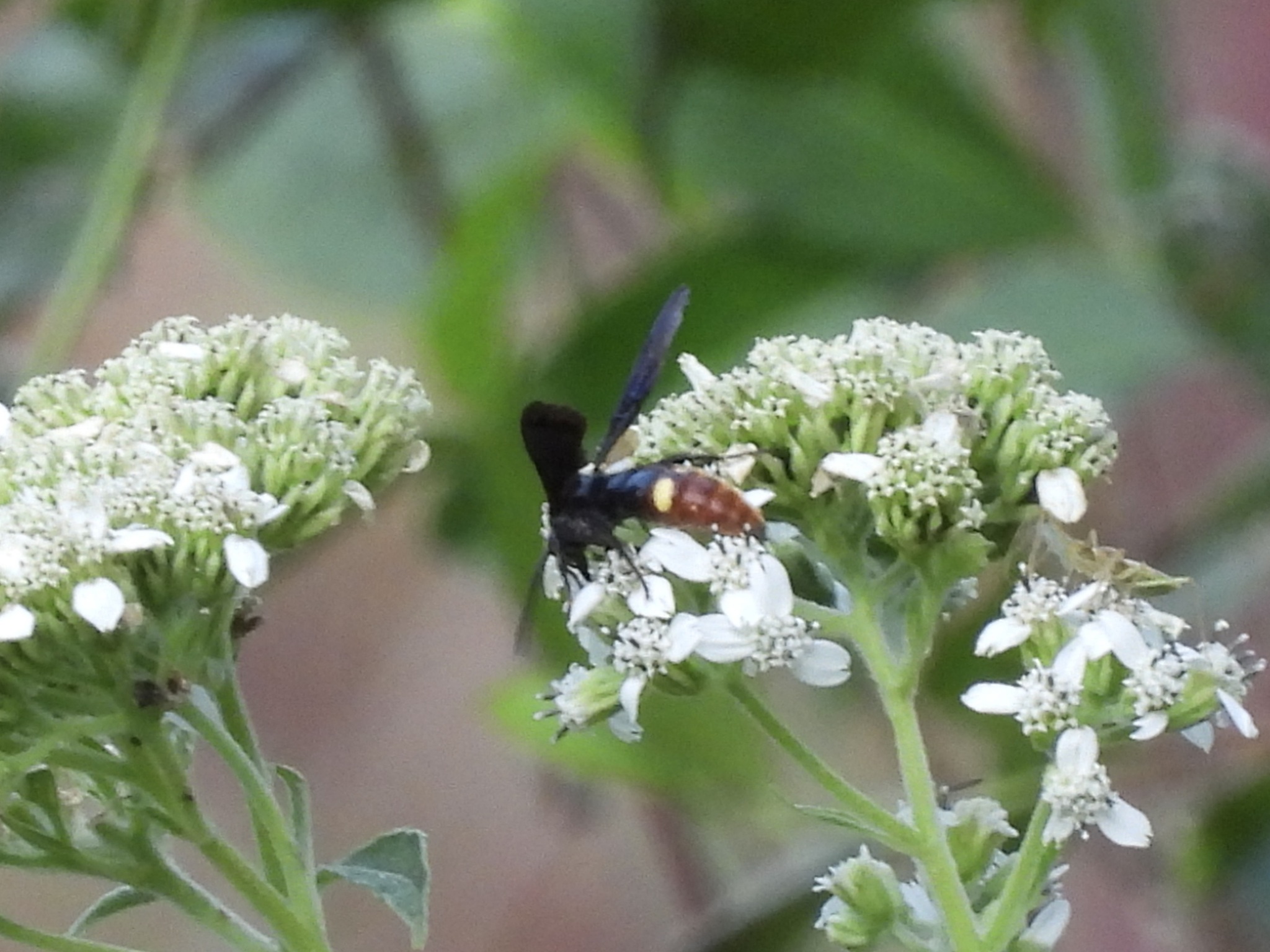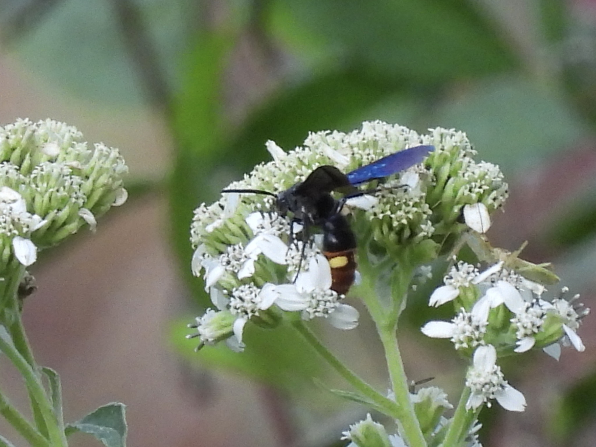 Scolia dubia | species | Verbesina virginica | species | eats | Animalia | Arthropoda | Insecta | Hymenoptera | Scoliidae | Scolia | Plantae | Tracheophyta | Magnoliopsida | Asterales | Asteraceae | Verbesina | 33.023908 | -97.145658 | 2024 | 10 | 11 | http://creativecommons.org/licenses/by-nc/4.0/ | https://www.inaturalist.org/observations/246979868 | |