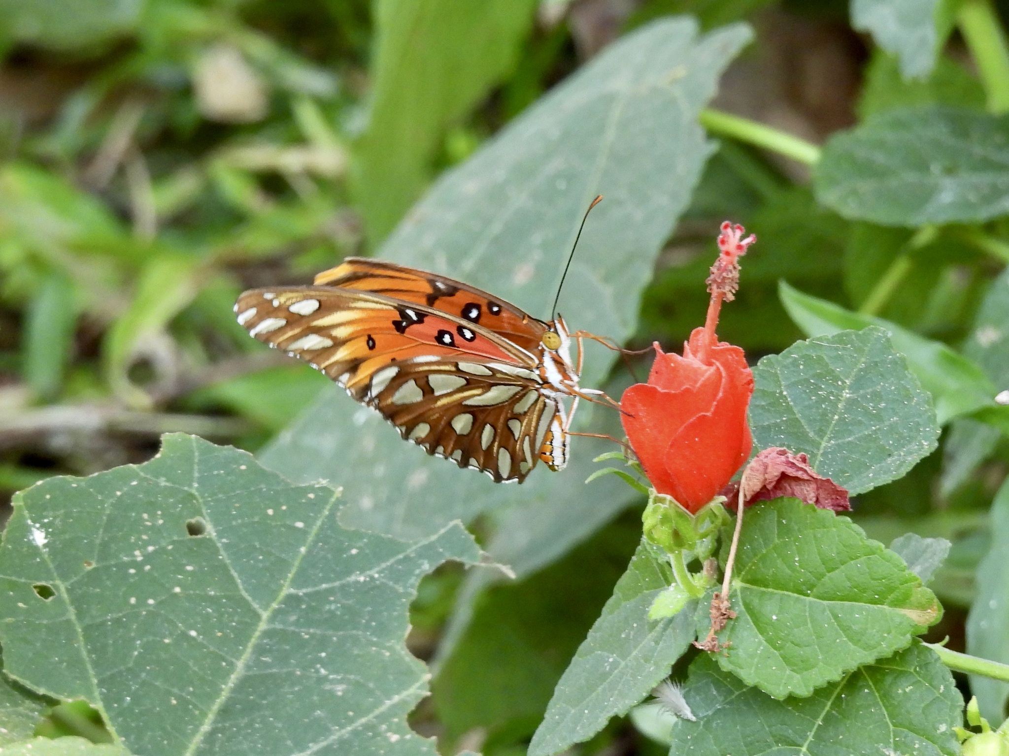 Dione vanillae | species | Malvaviscus arboreus | species | eats | Animalia | Arthropoda | Insecta | Lepidoptera | Nymphalidae | Dione | Plantae | Tracheophyta | Magnoliopsida | Malvales | Malvaceae | Malvaviscus | 33.023908 | -97.145658 | 2024 | 10 | 12 | http://creativecommons.org/licenses/by-nc/4.0/ | https://www.inaturalist.org/observations/246979904 | |