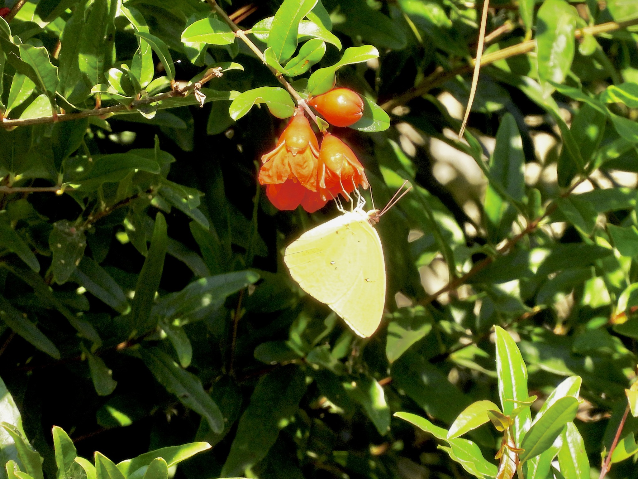 Phoebis sennae | species | Punica granatum | species | eats | Animalia | Arthropoda | Insecta | Lepidoptera | Pieridae | Phoebis | Plantae | Tracheophyta | Magnoliopsida | Myrtales | Lythraceae | Punica | 33.023908 | -97.145658 | 2024 | 10 | 12 | http://creativecommons.org/licenses/by-nc/4.0/ | https://www.inaturalist.org/observations/246979919 | |