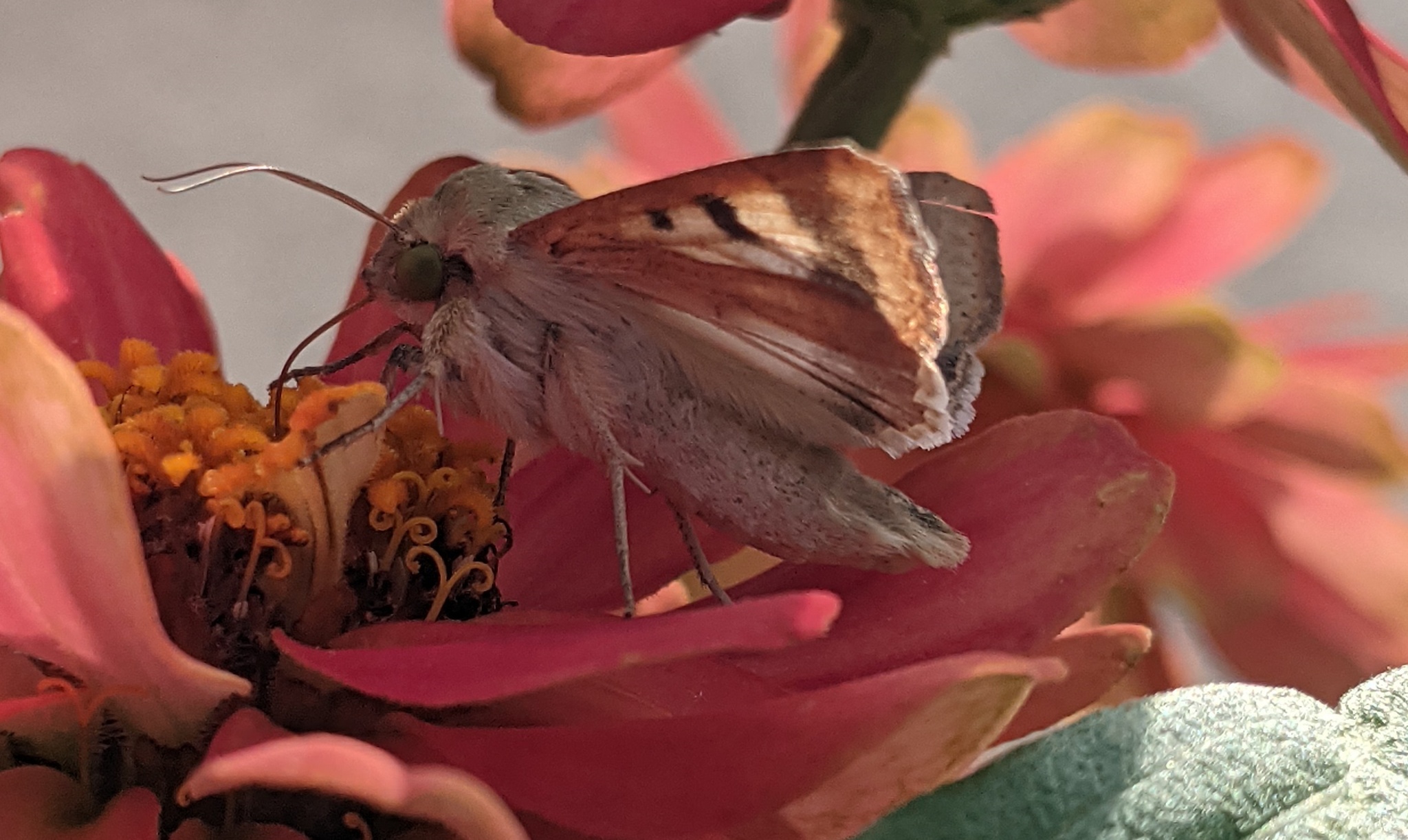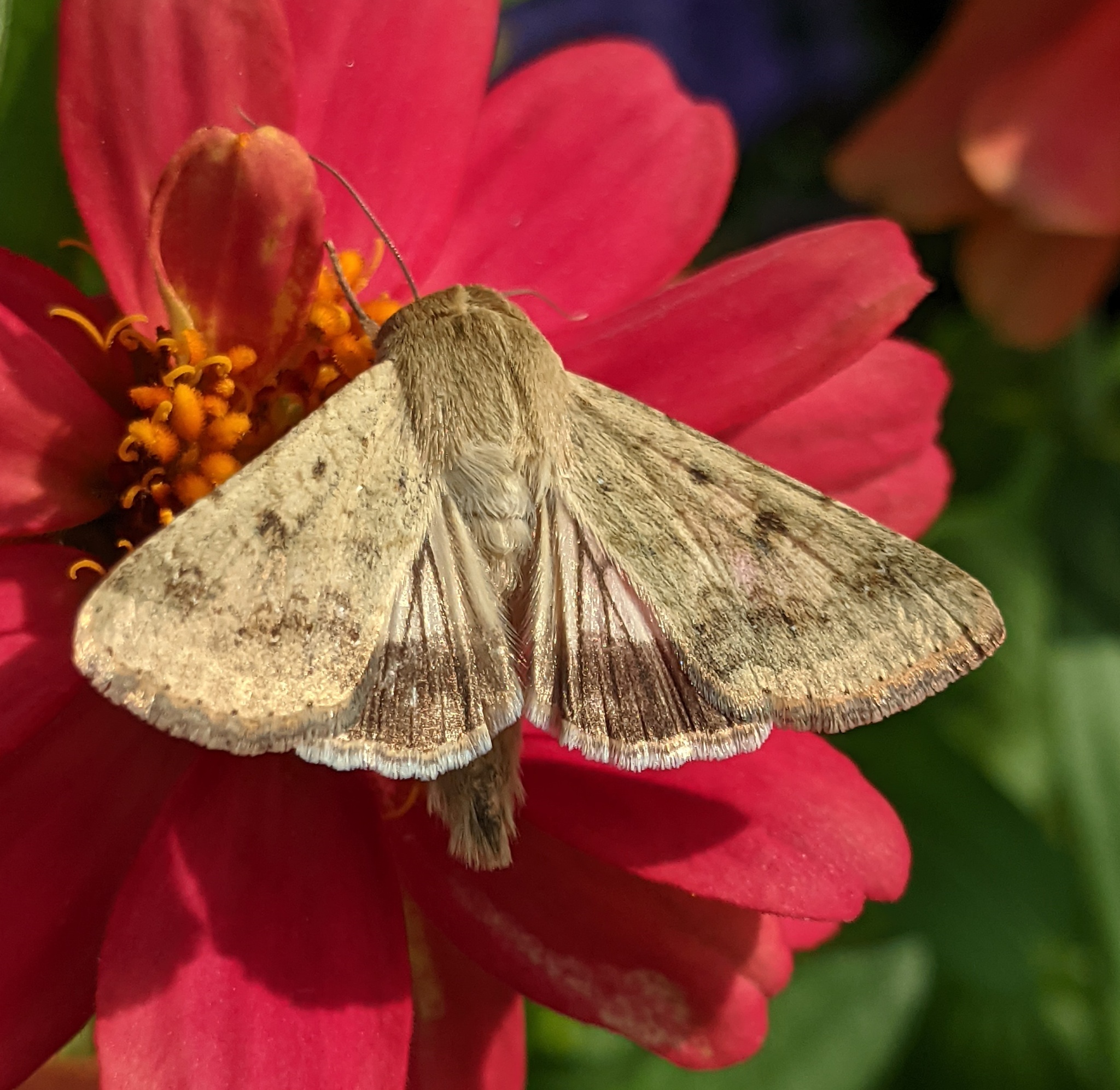 Helicoverpa zea | species | Zinnia | genus | visitsFlowersOf | Animalia | Arthropoda | Insecta | Lepidoptera | Noctuidae | Helicoverpa | Plantae | Tracheophyta | Magnoliopsida | Asterales | Asteraceae | Zinnia | 41.892927 | -80.366459 | 2024 | 10 | 11 | http://creativecommons.org/licenses/by-nc/4.0/ | https://www.inaturalist.org/observations/246838872 | |