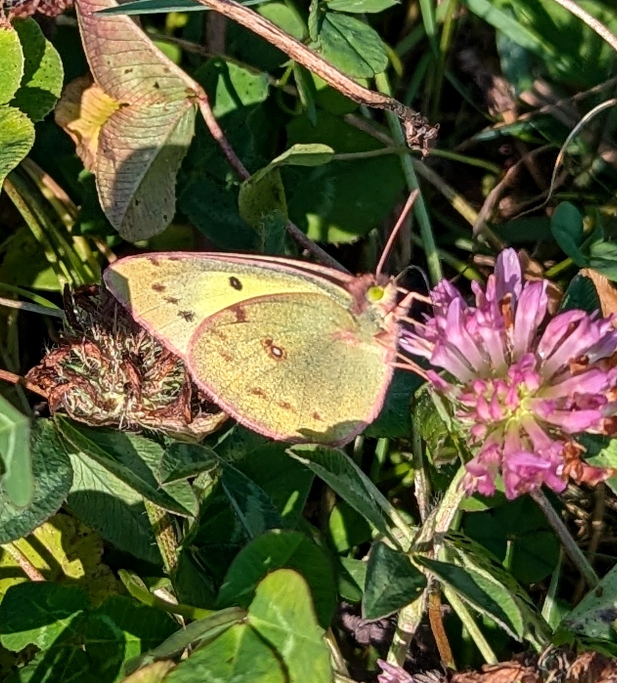 Colias philodice | species | Trifolium pratense | species | visitsFlowersOf | Animalia | Arthropoda | Insecta | Lepidoptera | Pieridae | Colias | Plantae | Tracheophyta | Magnoliopsida | Fabales | Fabaceae | Trifolium | 44.149608 | -71.800798 | 2024 | 10 | 11 | http://creativecommons.org/licenses/by-nc/4.0/ | https://www.inaturalist.org/observations/246843292 | |