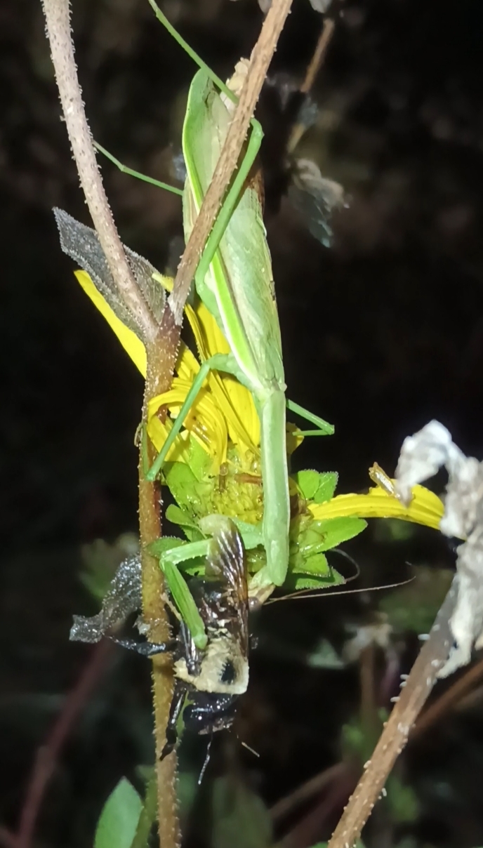 Tenodera angustipennis | species | Xylocopa virginica | species | preysOn | Animalia | Arthropoda | Insecta | Mantodea | Mantidae | Tenodera | Animalia | Arthropoda | Insecta | Hymenoptera | Apidae | Xylocopa | 38.986753 | -76.948455 | 2024 | 9 | 24 | http://creativecommons.org/licenses/by-nc/4.0/ | https://www.inaturalist.org/observations/246852075 | |
