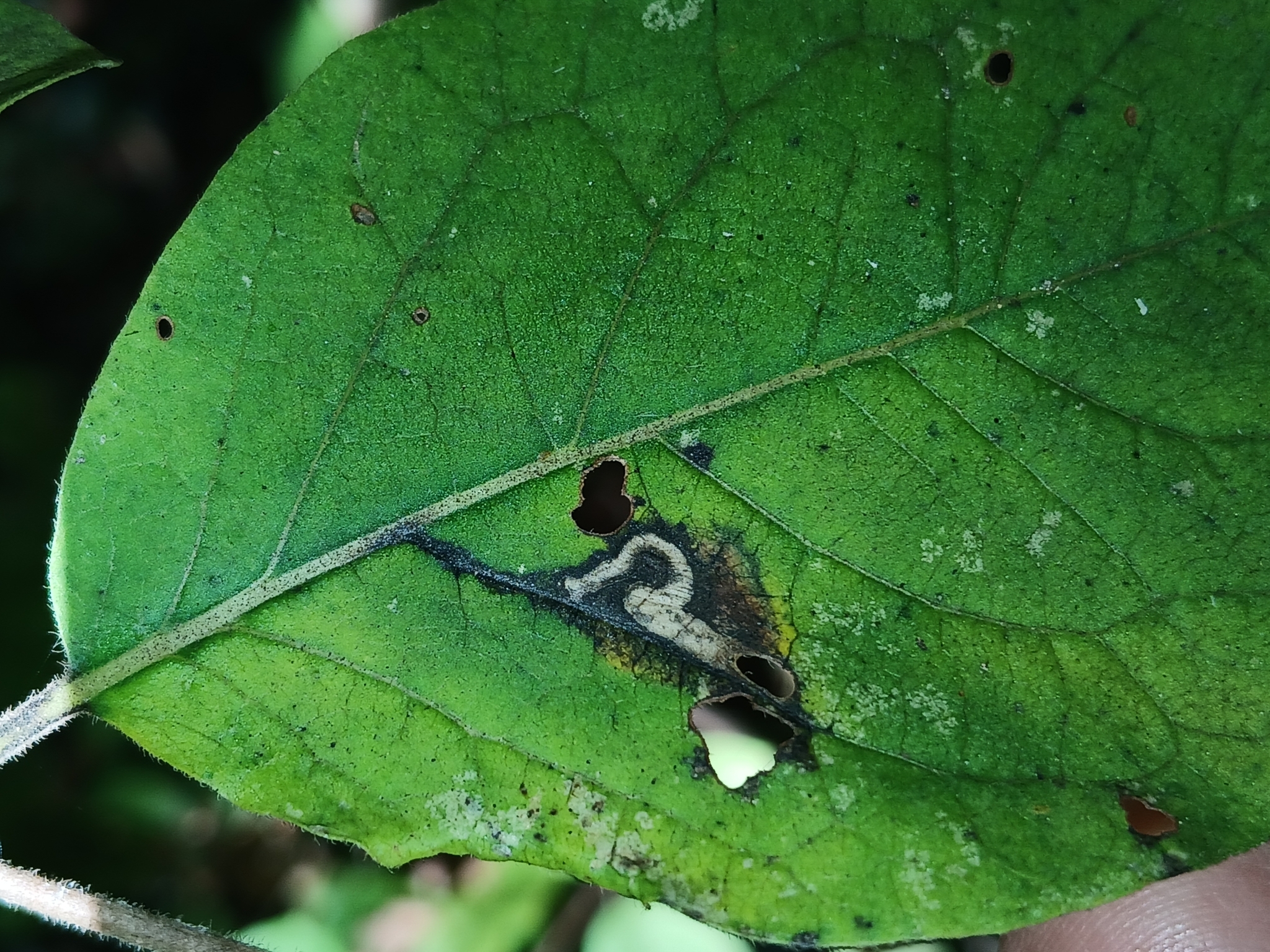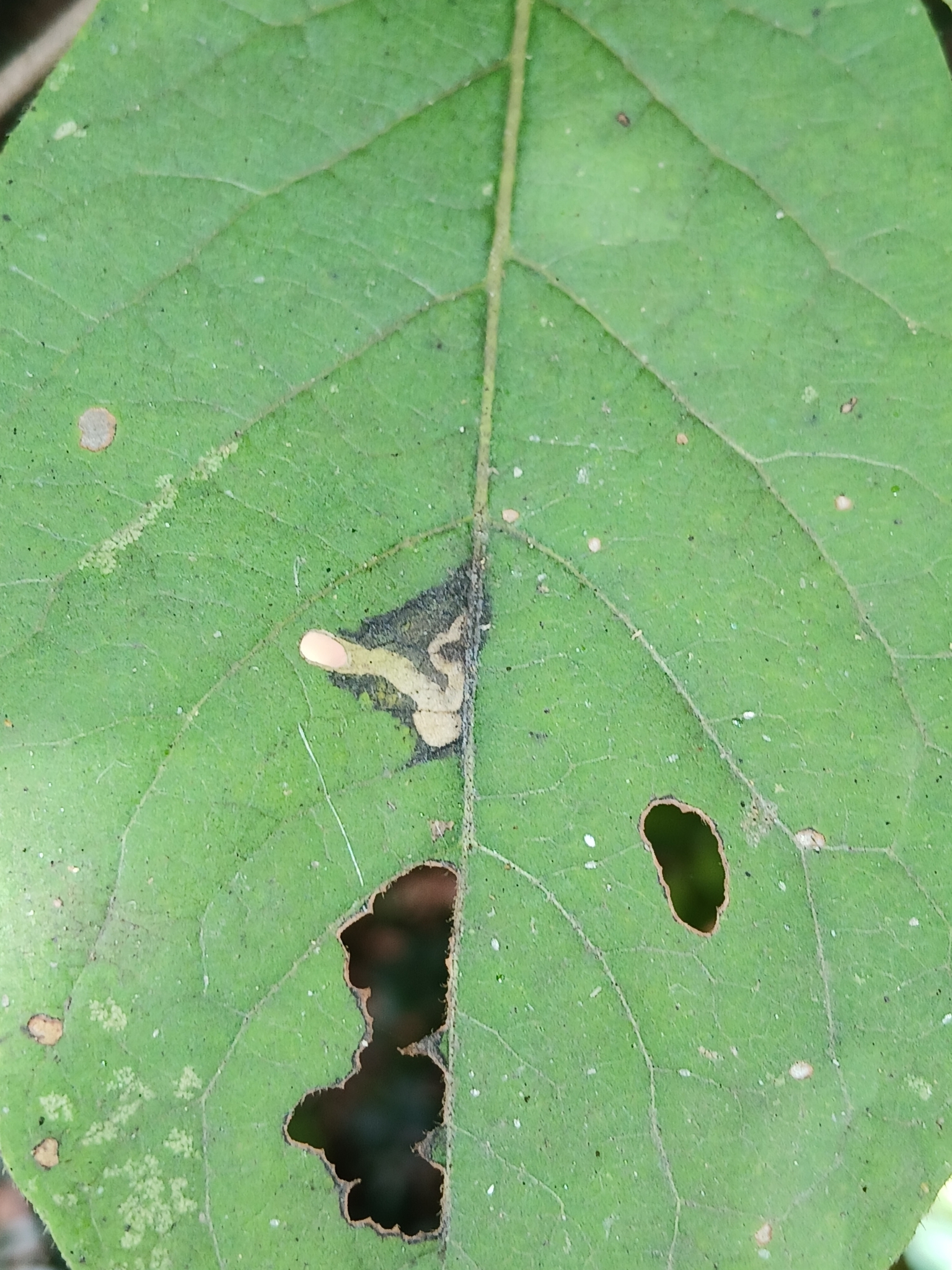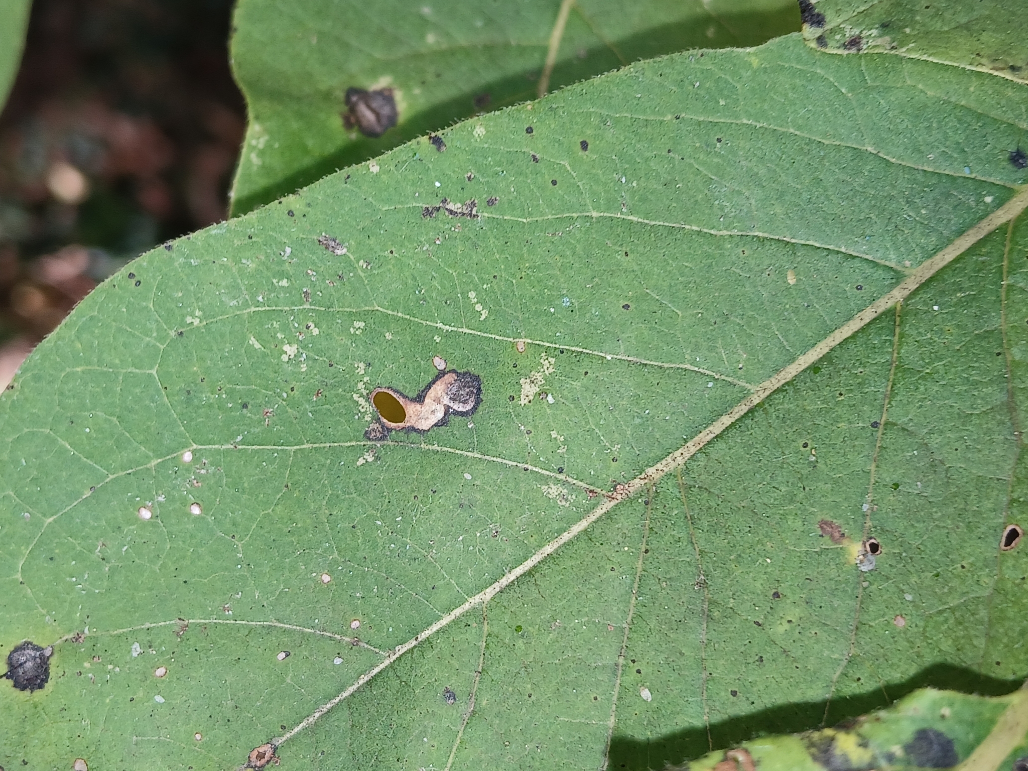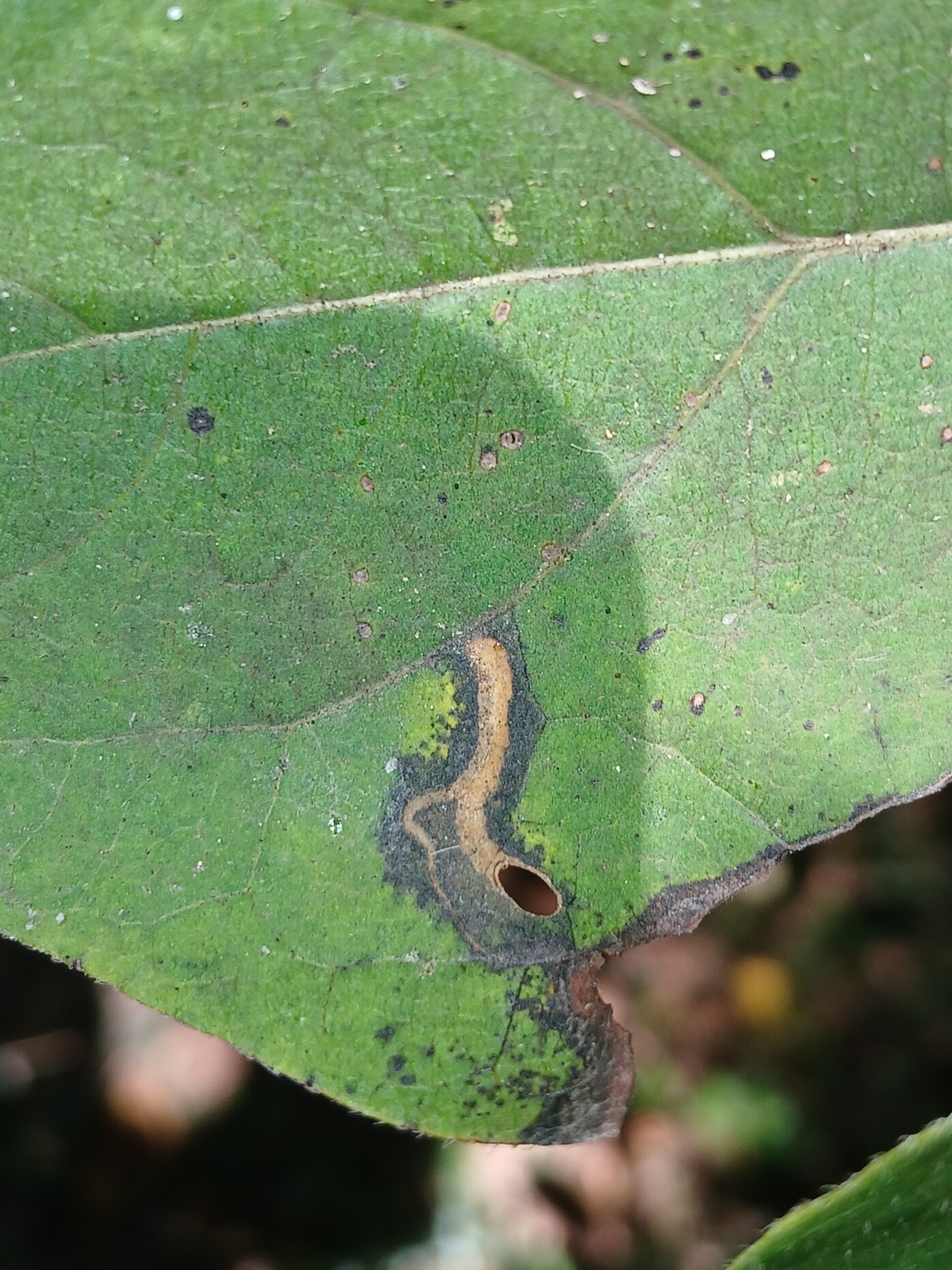 Coptodisca diospyriella | species | Diospyros virginiana | species | interactsWith | Animalia | Arthropoda | Insecta | Lepidoptera | Heliozelidae | Coptodisca | Plantae | Tracheophyta | Magnoliopsida | Ericales | Ebenaceae | Diospyros | 38.298672 | -76.53479 | 2024 | 10 | 10 | http://creativecommons.org/licenses/by-nc/4.0/ | https://www.inaturalist.org/observations/246861654 | |