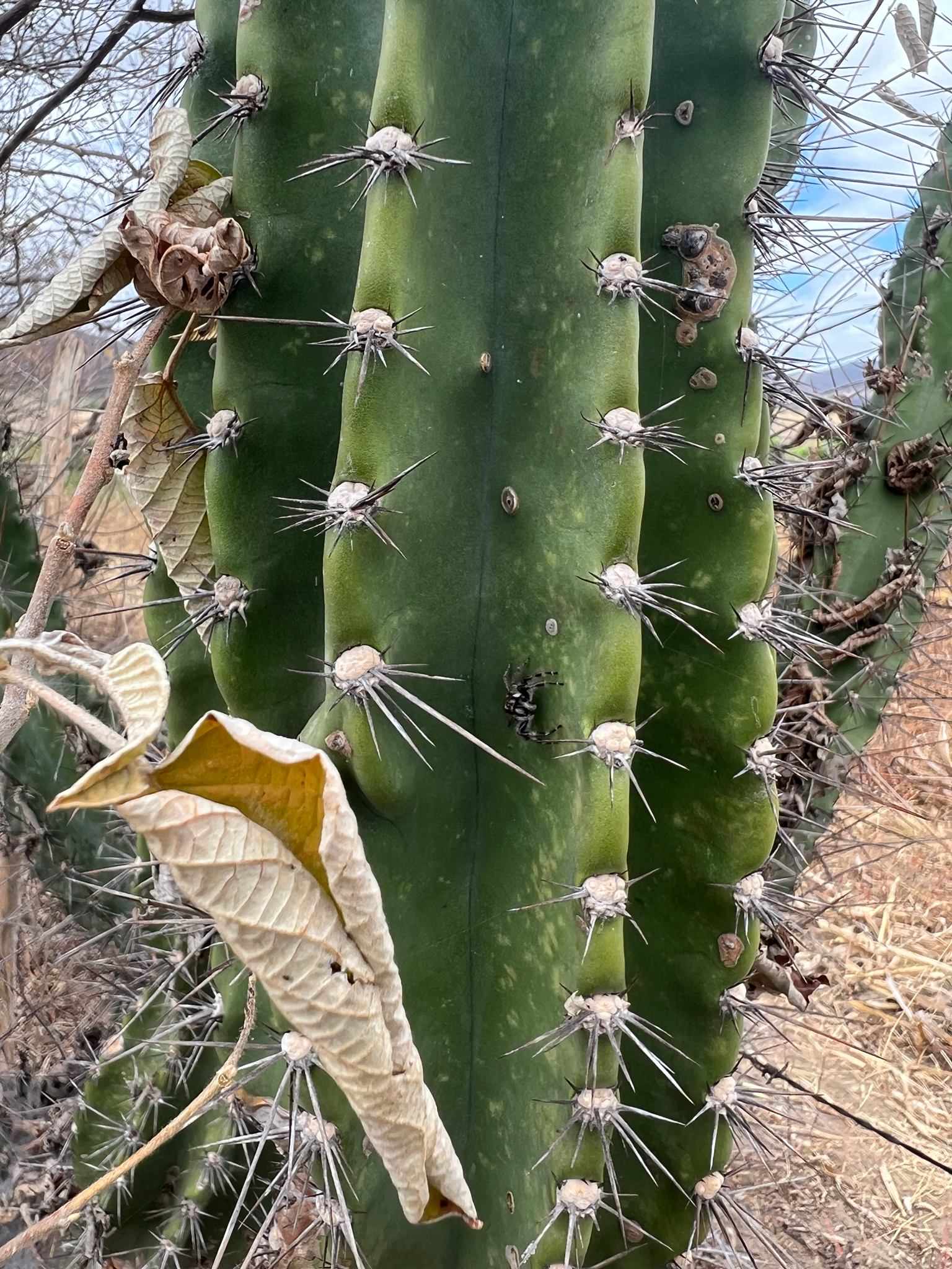 Megafreya sutrix | species | Cereus jamacaru | species | interactsWith | Animalia | Arthropoda | Arachnida | Araneae | Salticidae | Megafreya | Plantae | Tracheophyta | Magnoliopsida | Caryophyllales | Cactaceae | Cereus | -7.121892 | -35.527645 | 2024 | 10 | 10 | http://creativecommons.org/licenses/by-nc/4.0/ | https://www.inaturalist.org/observations/246862536 | |