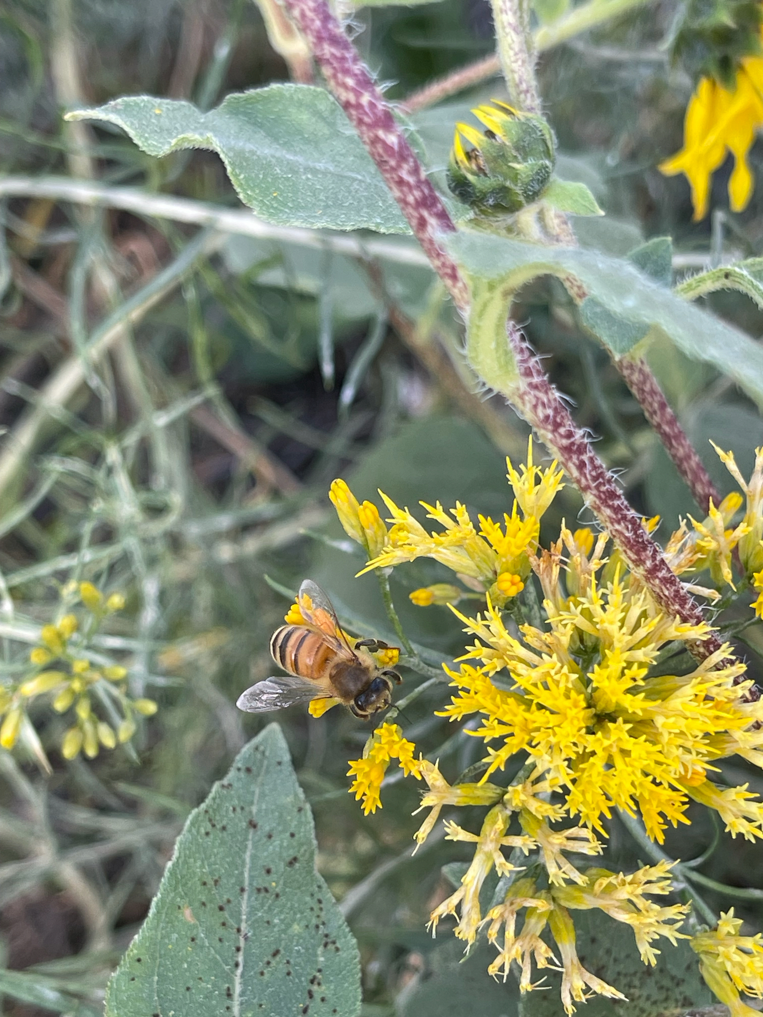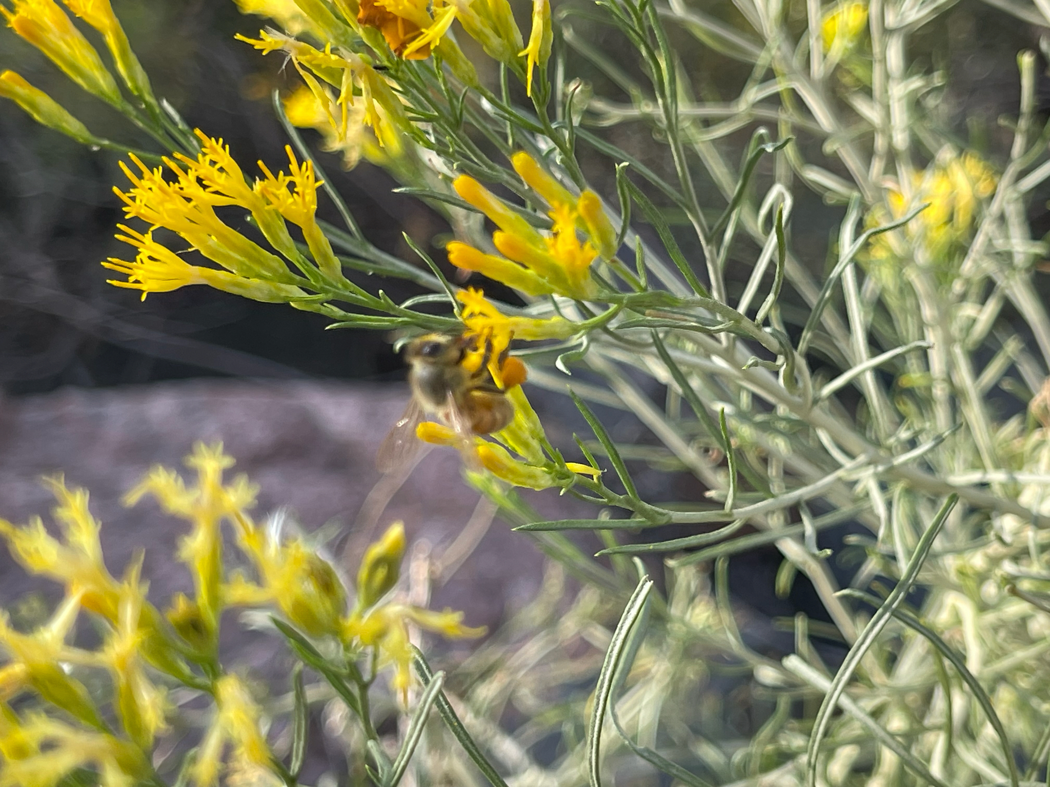 Apis mellifera | species | Ericameria nauseosa | species | interactsWith | Animalia | Arthropoda | Insecta | Hymenoptera | Apidae | Apis | Plantae | Tracheophyta | Magnoliopsida | Asterales | Asteraceae | Ericameria | 39.773267 | -105.14495 | 2024 | 10 | 11 | http://creativecommons.org/licenses/by/4.0/ | https://www.inaturalist.org/observations/246869587 | |
