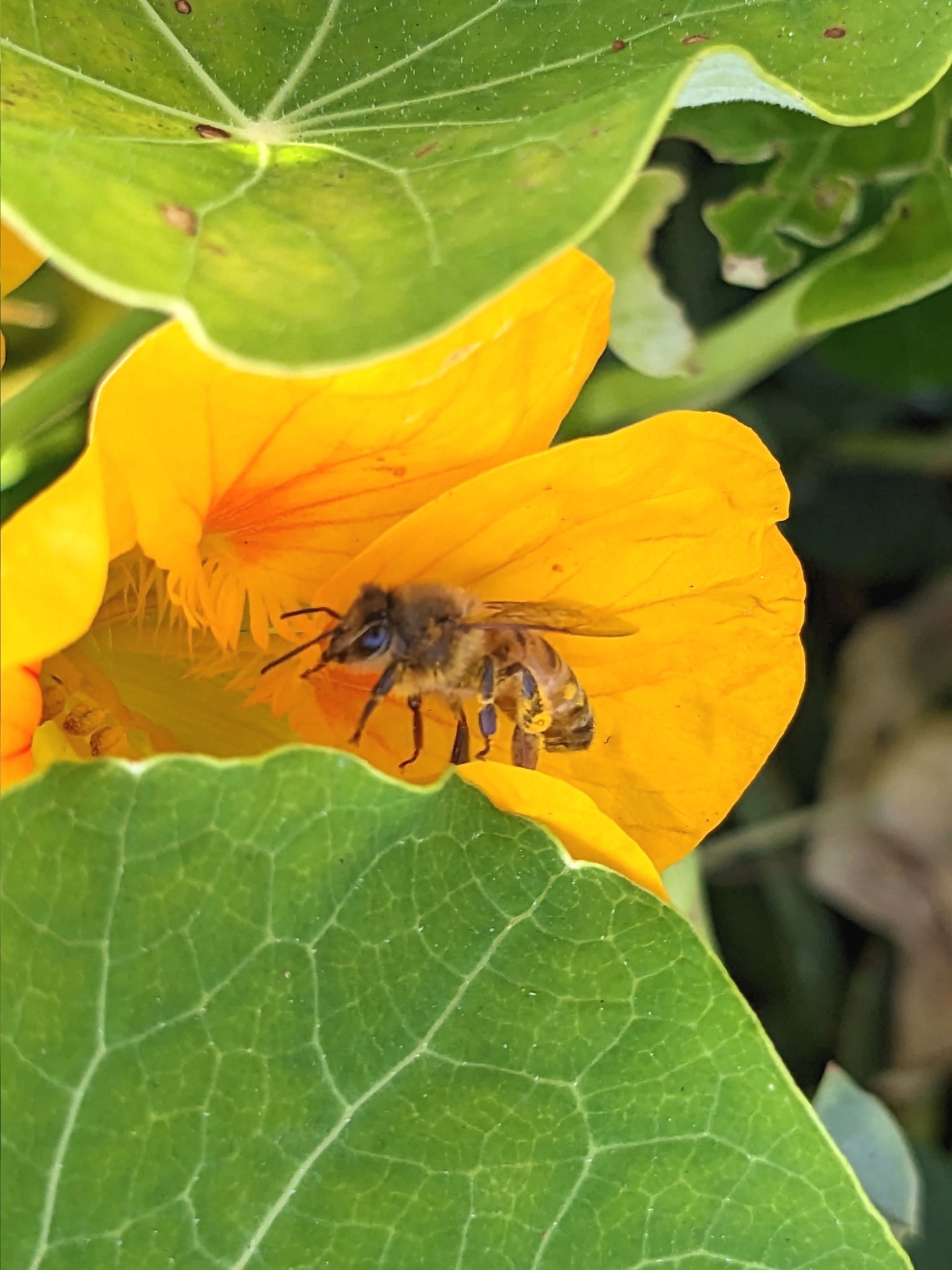 Apis mellifera | species | Tropaeolum majus | species | eats | Animalia | Arthropoda | Insecta | Hymenoptera | Apidae | Apis | Plantae | Tracheophyta | Magnoliopsida | Brassicales | Tropaeolaceae | Tropaeolum | 37.877833 | -122.26795 | 2023 | 5 | 31 | http://creativecommons.org/licenses/by/4.0/ | https://www.inaturalist.org/observations/164978822 | |