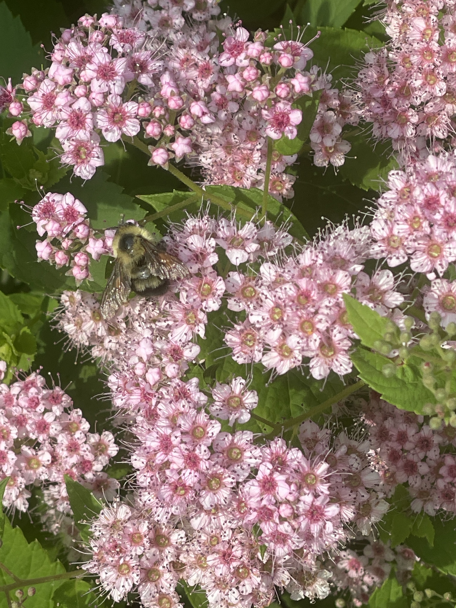 Bombus bimaculatus | species | Spiraea | genus | visitsFlowersOf | Animalia | Arthropoda | Insecta | Hymenoptera | Apidae | Bombus | Plantae | Tracheophyta | Magnoliopsida | Rosales | Rosaceae | Spiraea | 41.648675 | -91.518921 | 2023 | 6 | 1 | http://creativecommons.org/licenses/by-nc/4.0/ | https://www.inaturalist.org/observations/164970738 | |