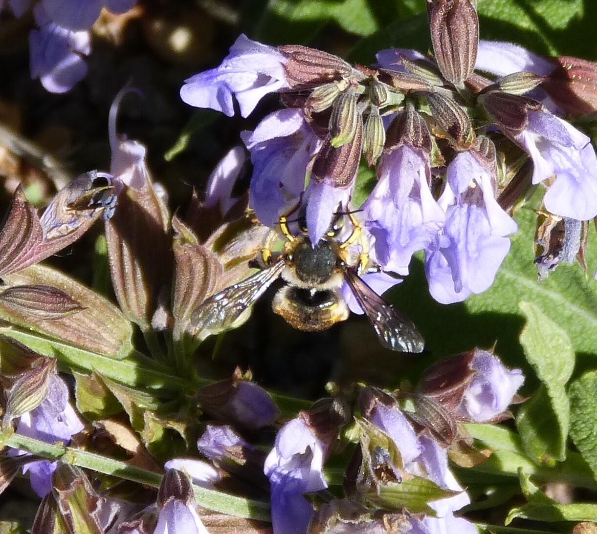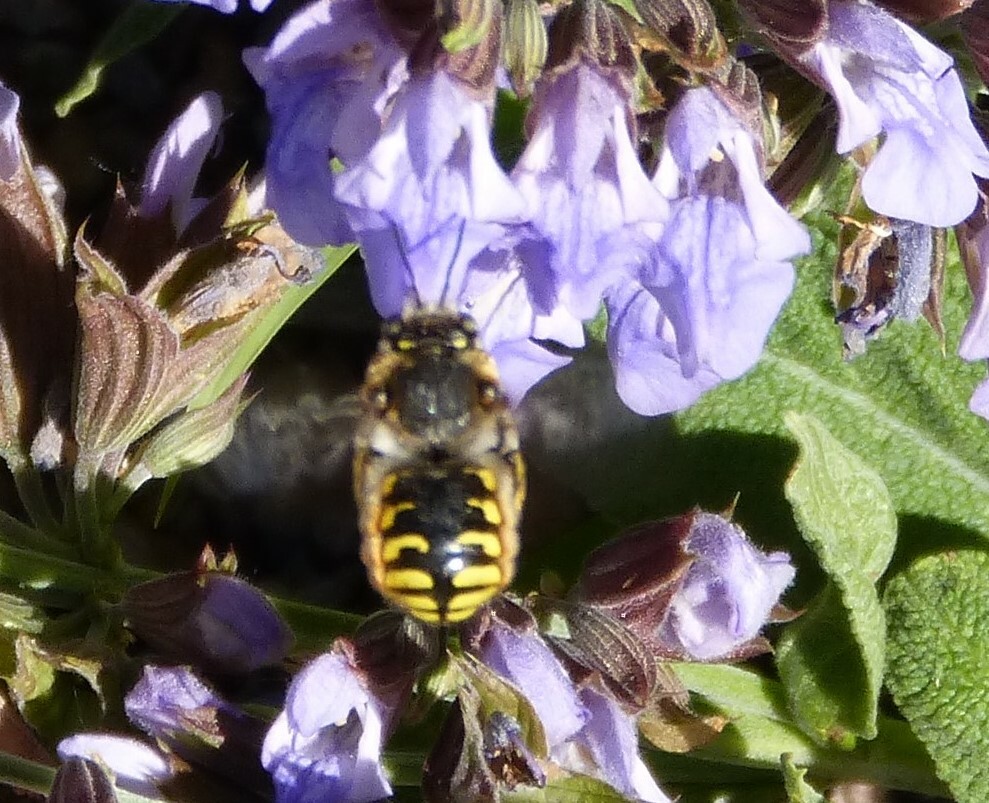 Anthidium manicatum | species | Salvia officinalis | species | interactsWith | Animalia | Arthropoda | Insecta | Hymenoptera | Megachilidae | Anthidium | Plantae | Tracheophyta | Magnoliopsida | Lamiales | Lamiaceae | Salvia | 51.488615 | 11.962234 | 2023 | 5 | 31 | http://creativecommons.org/licenses/by-nc/4.0/ | https://www.inaturalist.org/observations/164979349 | |