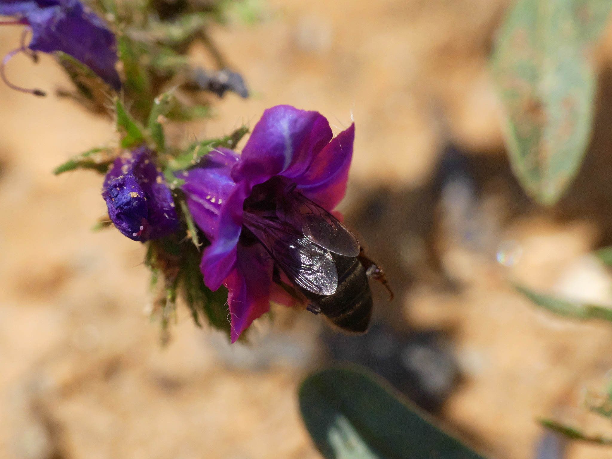 Apis mellifera | species | Echium plantagineum | species | visitsFlowersOf | Animalia | Arthropoda | Insecta | Hymenoptera | Apidae | Apis | Plantae | Tracheophyta | Magnoliopsida | Boraginales | Boraginaceae | Echium | 36.691623 | 3.054179 | 2023 | 6 | 1 | http://creativecommons.org/licenses/by-nc/4.0/ | https://www.inaturalist.org/observations/164988144 | |