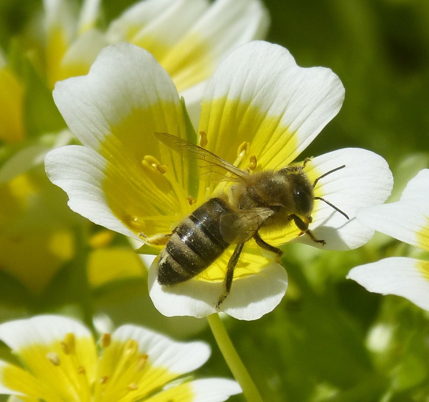 Apis mellifera | species | Limnanthes douglasii | species | interactsWith | Animalia | Arthropoda | Insecta | Hymenoptera | Apidae | Apis | Plantae | Tracheophyta | Magnoliopsida | Brassicales | Limnanthaceae | Limnanthes | 51.48832 | 11.961848 | 2023 | 5 | 31 | http://creativecommons.org/licenses/by-nc/4.0/ | https://www.inaturalist.org/observations/164993095 | |