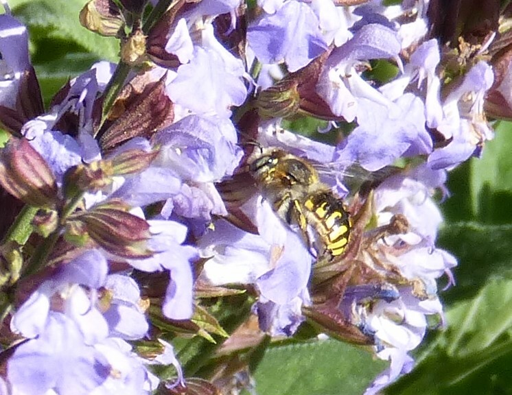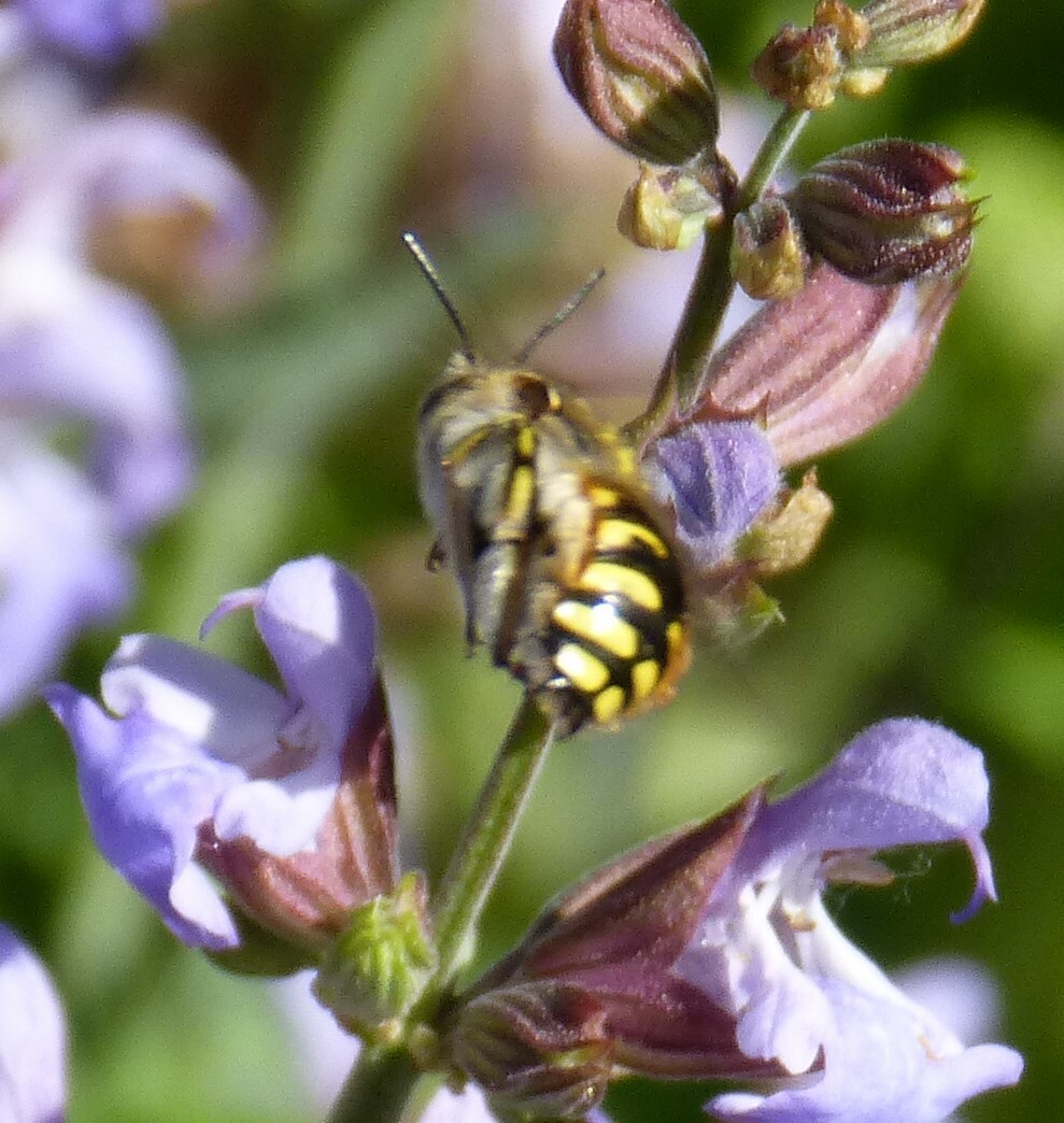 Anthidium manicatum | species | Salvia officinalis | species | interactsWith | Animalia | Arthropoda | Insecta | Hymenoptera | Megachilidae | Anthidium | Plantae | Tracheophyta | Magnoliopsida | Lamiales | Lamiaceae | Salvia | 51.48863 | 11.962262 | 2023 | 5 | 31 | http://creativecommons.org/licenses/by-nc/4.0/ | https://www.inaturalist.org/observations/164986581 | |