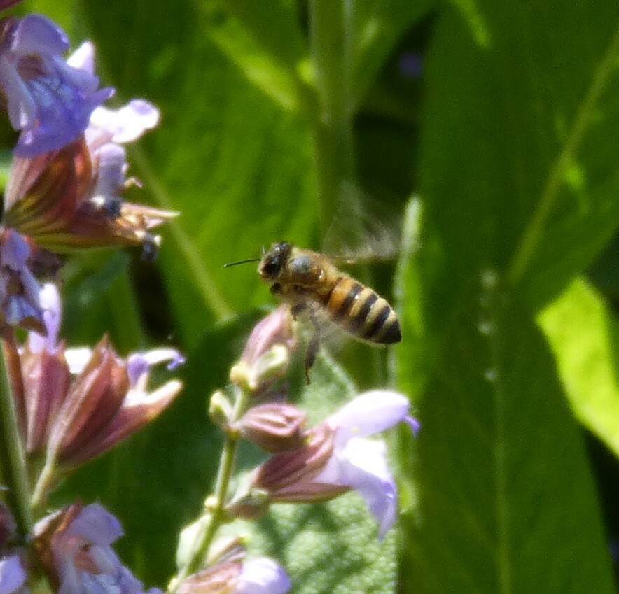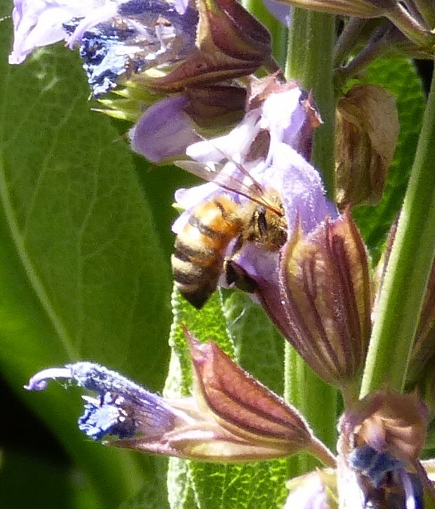 Apis mellifera | species | Salvia officinalis | species | interactsWith | Animalia | Arthropoda | Insecta | Hymenoptera | Apidae | Apis | Plantae | Tracheophyta | Magnoliopsida | Lamiales | Lamiaceae | Salvia | 51.48863 | 11.962246 | 2023 | 5 | 31 | http://creativecommons.org/licenses/by-nc/4.0/ | https://www.inaturalist.org/observations/164986590 | |