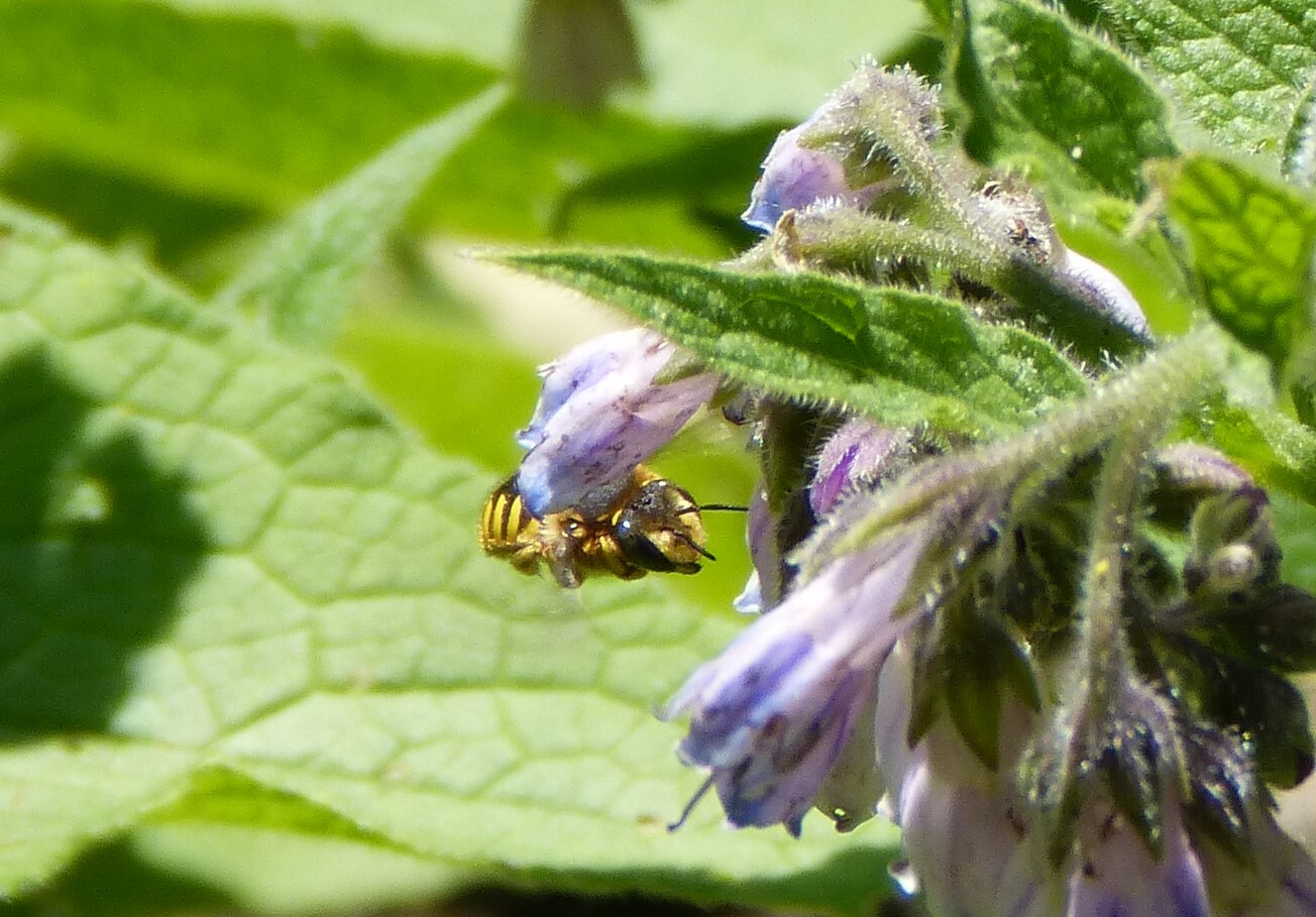 Anthidium manicatum | species | Symphytum officinale | species | interactsWith | Animalia | Arthropoda | Insecta | Hymenoptera | Megachilidae | Anthidium | Plantae | Tracheophyta | Magnoliopsida | Boraginales | Boraginaceae | Symphytum | 51.488319 | 11.961502 | 2023 | 5 | 31 | http://creativecommons.org/licenses/by-nc/4.0/ | https://www.inaturalist.org/observations/164990079 | |