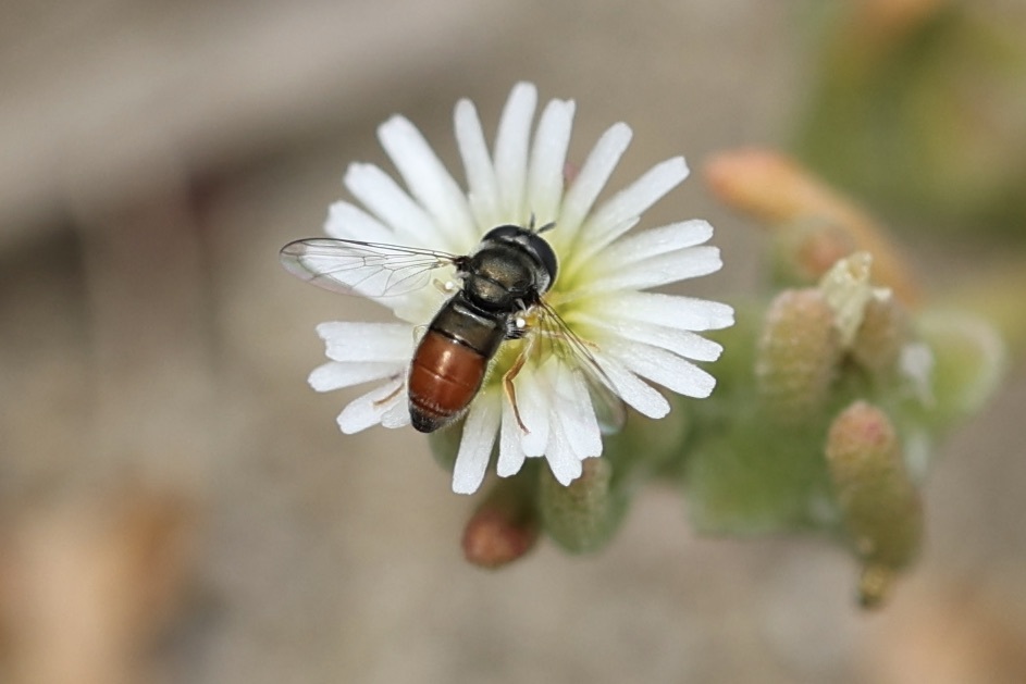 Paragus haemorrhous | species | Mesembryanthemum nodiflorum | species | visitsFlowersOf | Animalia | Arthropoda | Insecta | Diptera | Syrphidae | Paragus | Plantae | Tracheophyta | Magnoliopsida | Caryophyllales | Aizoaceae | Mesembryanthemum | 32.672777 | -117.245024 | 2023 | 5 | 31 | http://creativecommons.org/licenses/by-nc/4.0/ | https://www.inaturalist.org/observations/164919674 | |