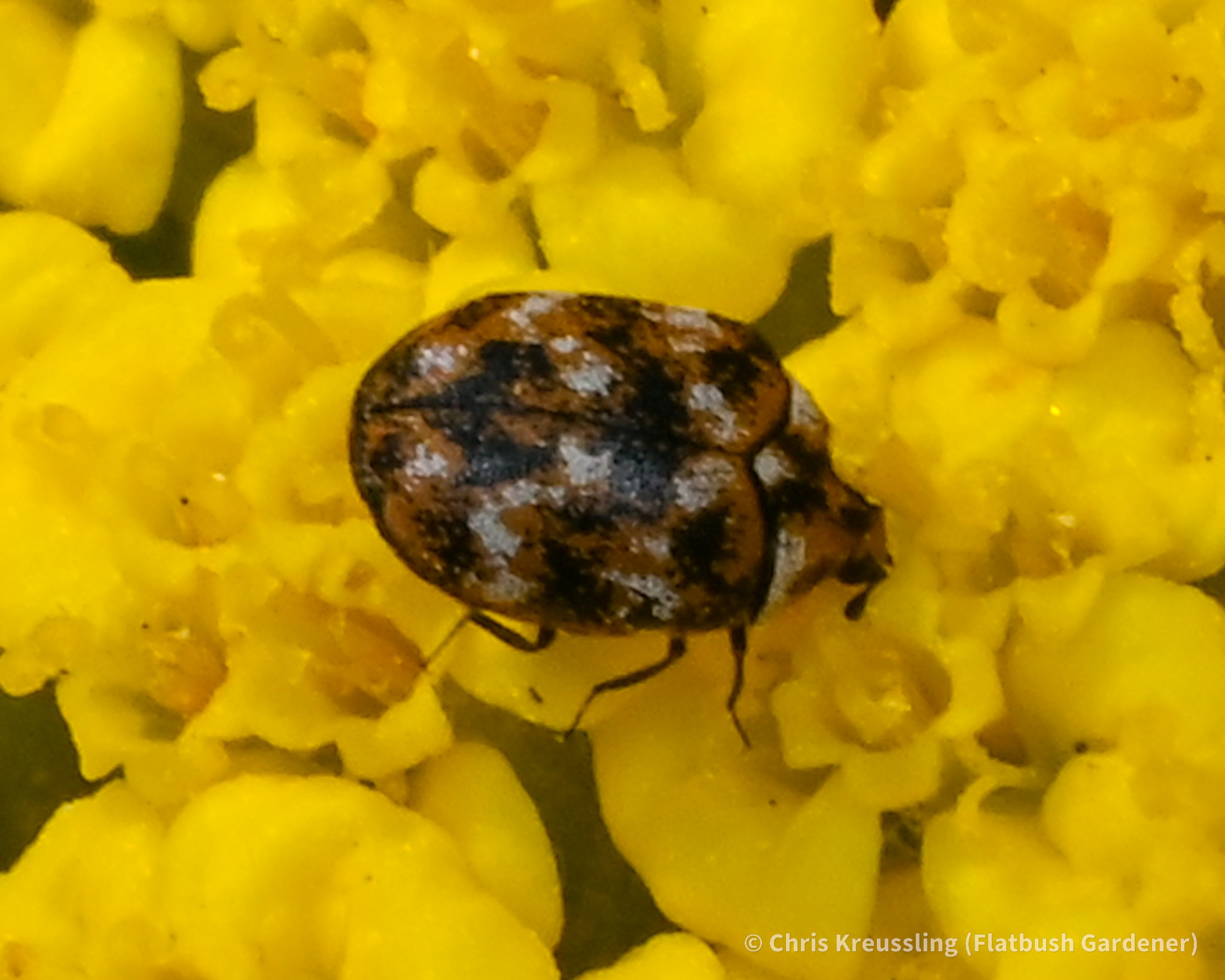 Anthrenus verbasci | species | Achillea millefolium | species | visitsFlowersOf | Animalia | Arthropoda | Insecta | Coleoptera | Dermestidae | Anthrenus | Plantae | Tracheophyta | Magnoliopsida | Asterales | Asteraceae | Achillea | 40.648411 | -73.977235 | 2023 | 5 | 31 | http://creativecommons.org/licenses/by-nc/4.0/ | https://www.inaturalist.org/observations/164915955 | |