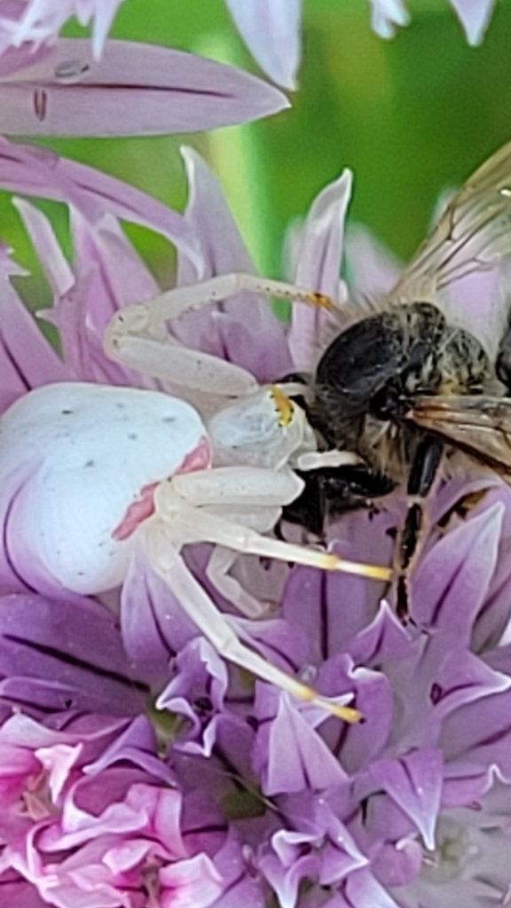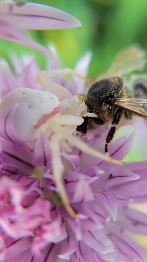 Misumena vatia | species | Apis mellifera | species | preysOn | Animalia | Arthropoda | Arachnida | Araneae | Thomisidae | Misumena | Animalia | Arthropoda | Insecta | Hymenoptera | Apidae | Apis | 42.891687 | -73.28794 | 2023 | 5 | 31 | http://creativecommons.org/licenses/by-nc/4.0/ | https://www.inaturalist.org/observations/164918940 | |