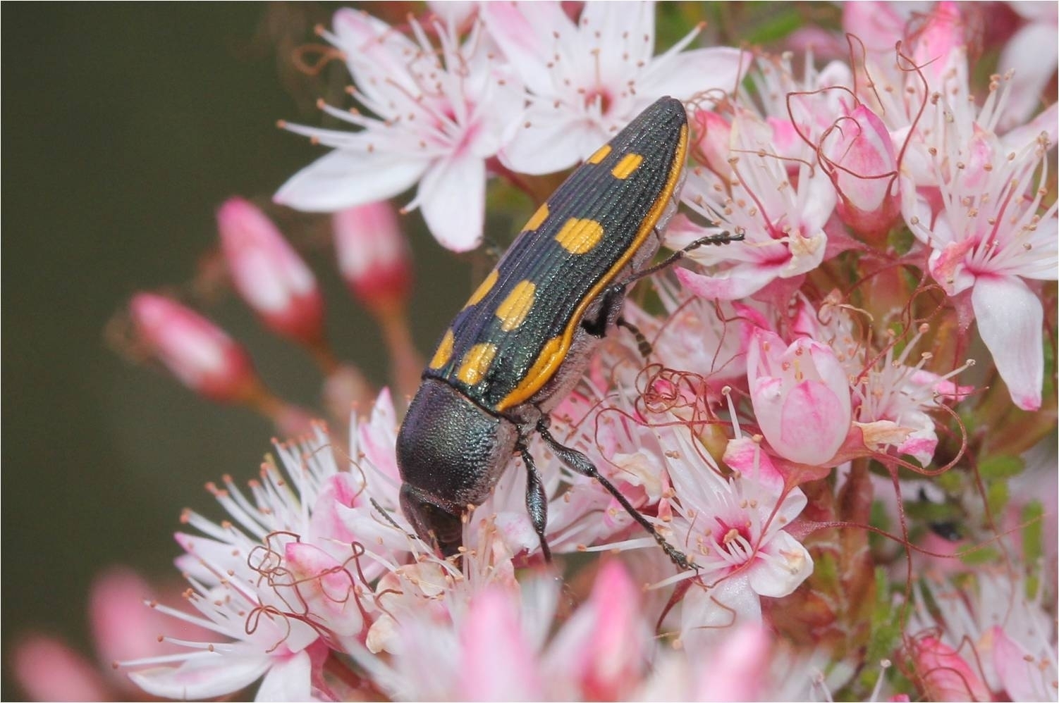 Castiarina xanthopilosa | species | Calytrix tetragona | species | interactsWith | Animalia | Arthropoda | Insecta | Coleoptera | Buprestidae | Castiarina | Plantae | Tracheophyta | Magnoliopsida | Myrtales | Myrtaceae | Calytrix | -35.337273 | 138.740839 | 2013 | 10 | 3 | http://creativecommons.org/licenses/by-nc/4.0/ | https://www.inaturalist.org/observations/164926181 | |