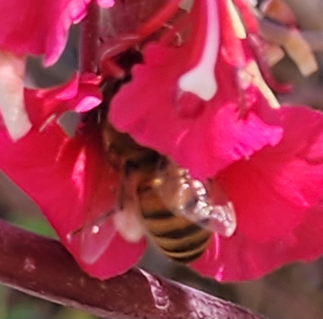 Apis mellifera | species | Clarkia unguiculata | species | eats | Animalia | Arthropoda | Insecta | Hymenoptera | Apidae | Apis | Plantae | Tracheophyta | Magnoliopsida | Myrtales | Onagraceae | Clarkia | 37.819597 | -122.245438 | 2023 | 5 | 31 | http://creativecommons.org/licenses/by/4.0/ | https://www.inaturalist.org/observations/164894045 | |