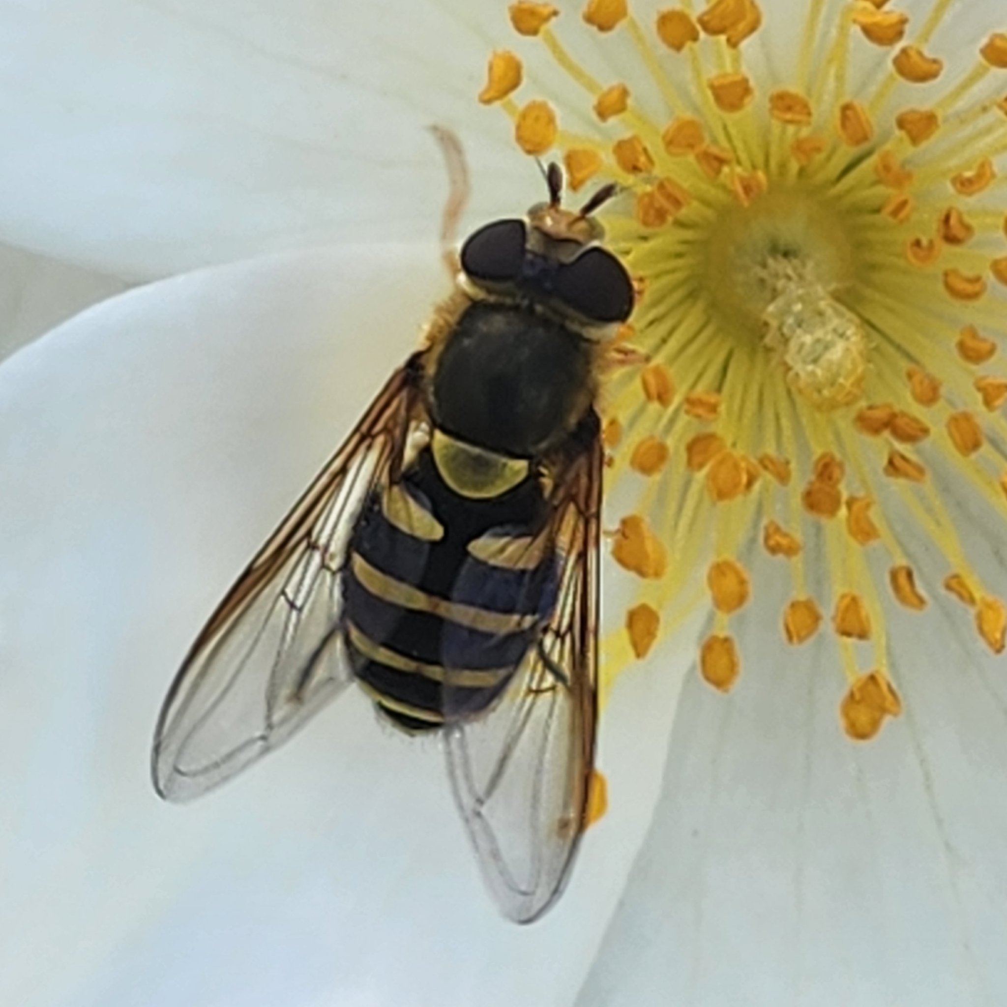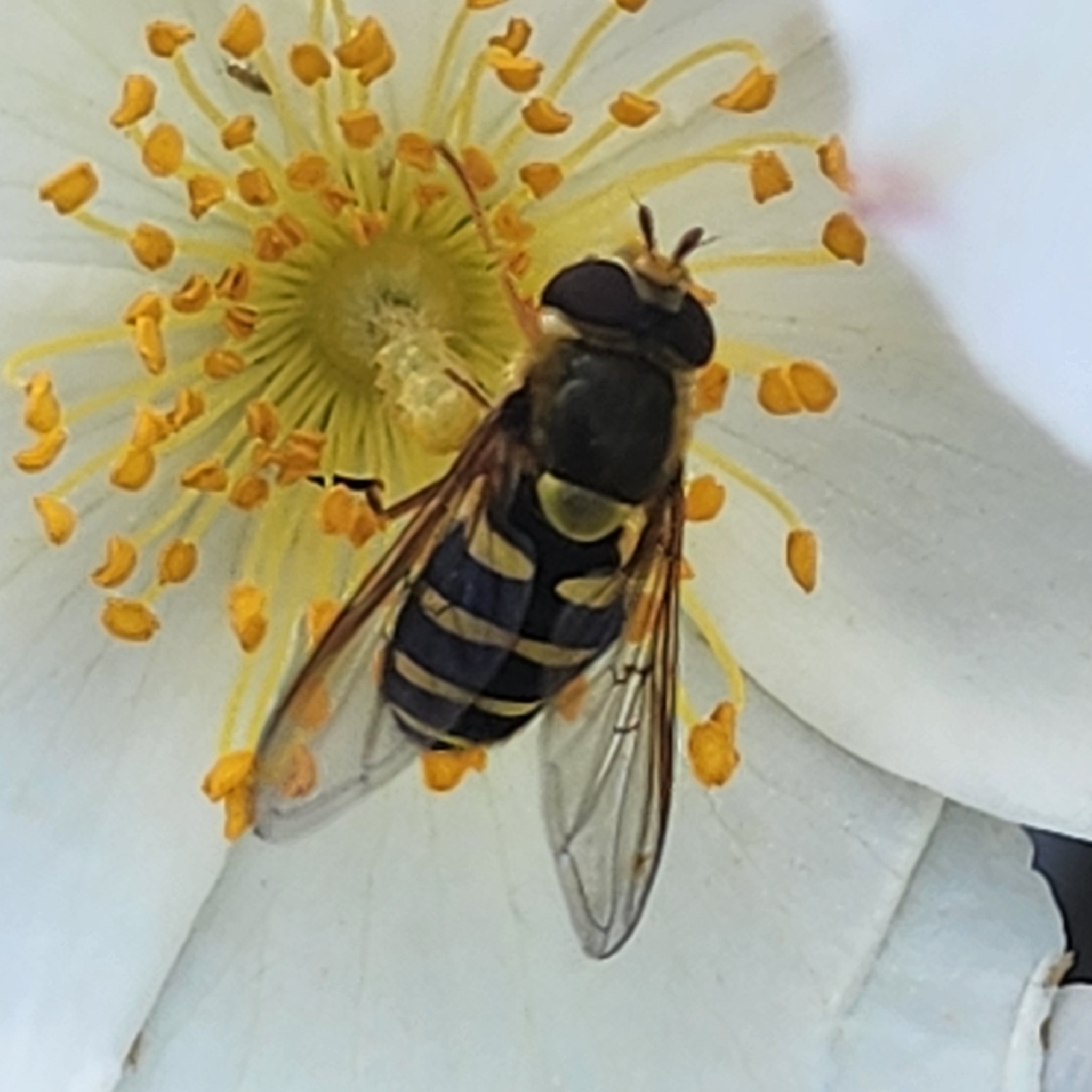 Syrphus opinator | species | Rosa multiflora | species | eats | Animalia | Arthropoda | Insecta | Diptera | Syrphidae | Syrphus | Plantae | Tracheophyta | Magnoliopsida | Rosales | Rosaceae | Rosa | 37.819591 | -122.24549 | 2023 | 5 | 31 | http://creativecommons.org/licenses/by/4.0/ | https://www.inaturalist.org/observations/164895263 | |