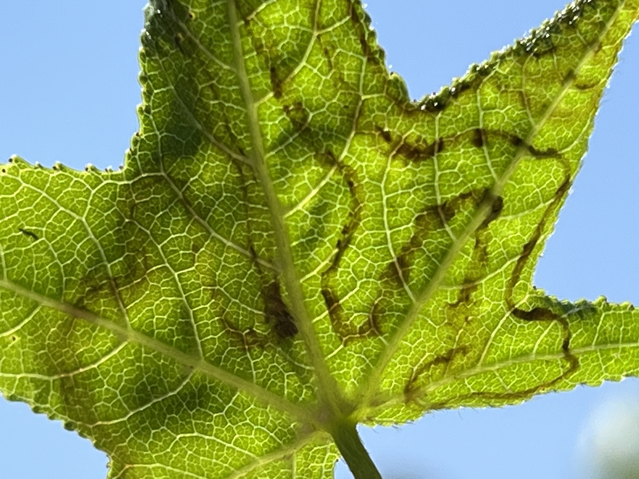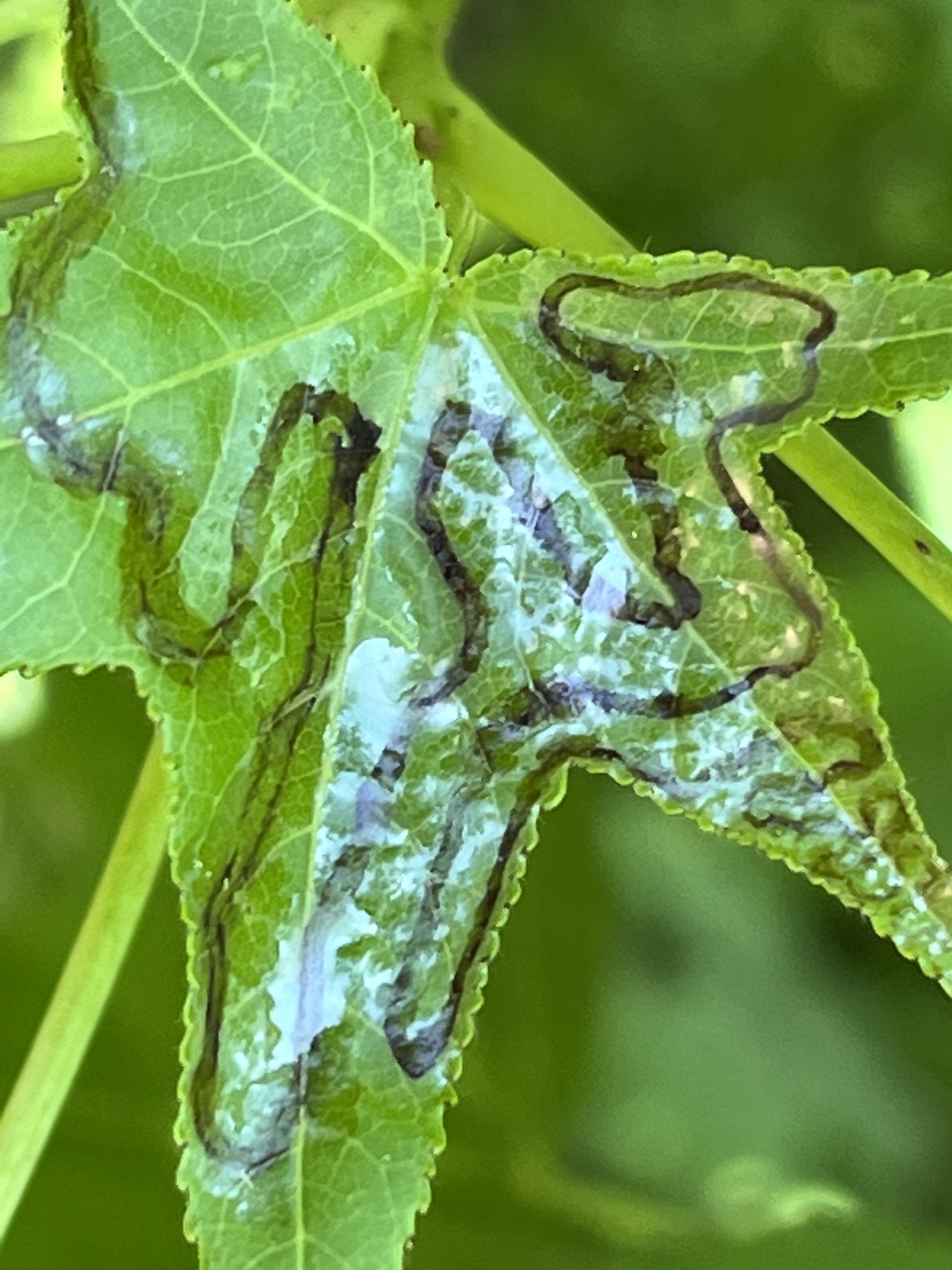 Phyllocnistis liquidambarisella | species | Liquidambar styraciflua | species | interactsWith | Animalia | Arthropoda | Insecta | Lepidoptera | Gracillariidae | Phyllocnistis | Plantae | Tracheophyta | Magnoliopsida | Saxifragales | Altingiaceae | Liquidambar | 39.073039 | -77.466842 | 2023 | 5 | 31 | http://creativecommons.org/licenses/by-nc/4.0/ | https://www.inaturalist.org/observations/164882330 | |