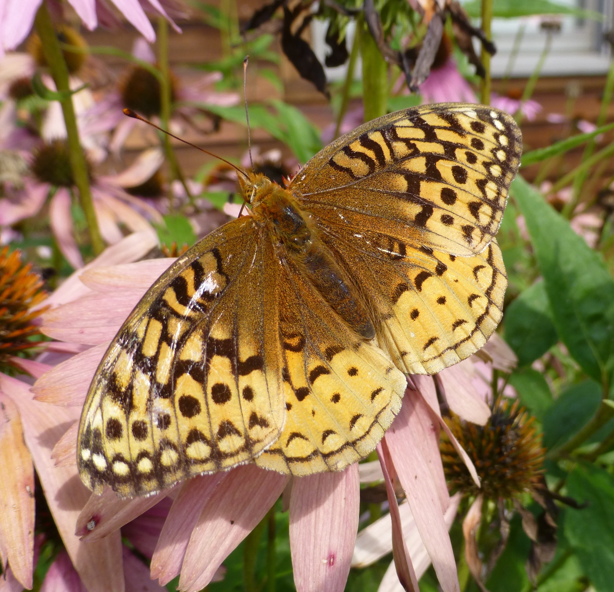 Speyeria cybele | species | Echinacea | genus | visitsFlowersOf | Animalia | Arthropoda | Insecta | Lepidoptera | Nymphalidae | Speyeria | Plantae | Tracheophyta | Magnoliopsida | Asterales | Asteraceae | Echinacea | 43.808392 | -72.211017 | 2013 | 8 | 28 | http://creativecommons.org/licenses/by-nc/4.0/ | https://www.inaturalist.org/observations/399884 | |