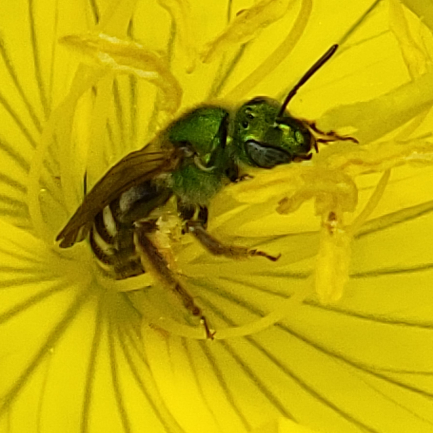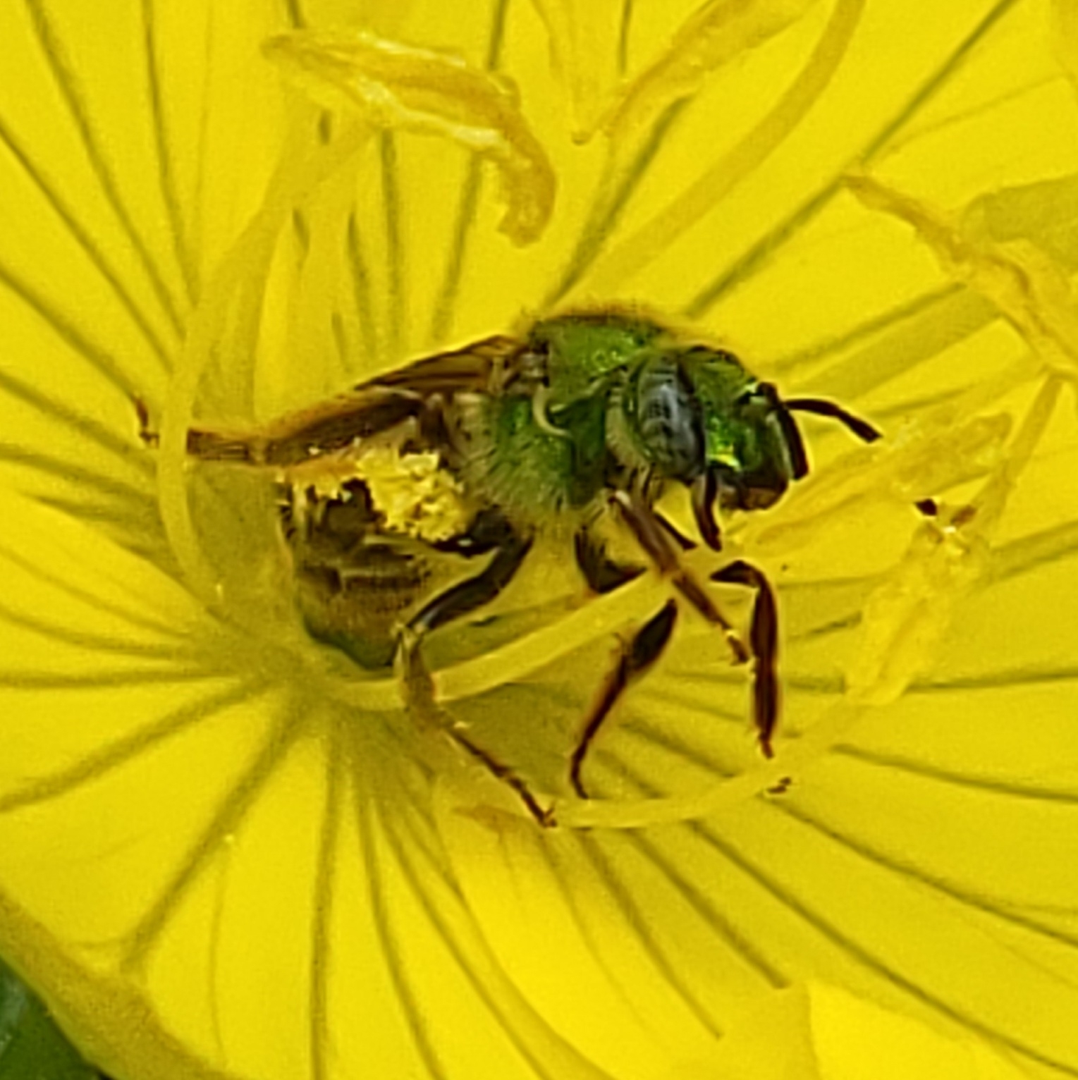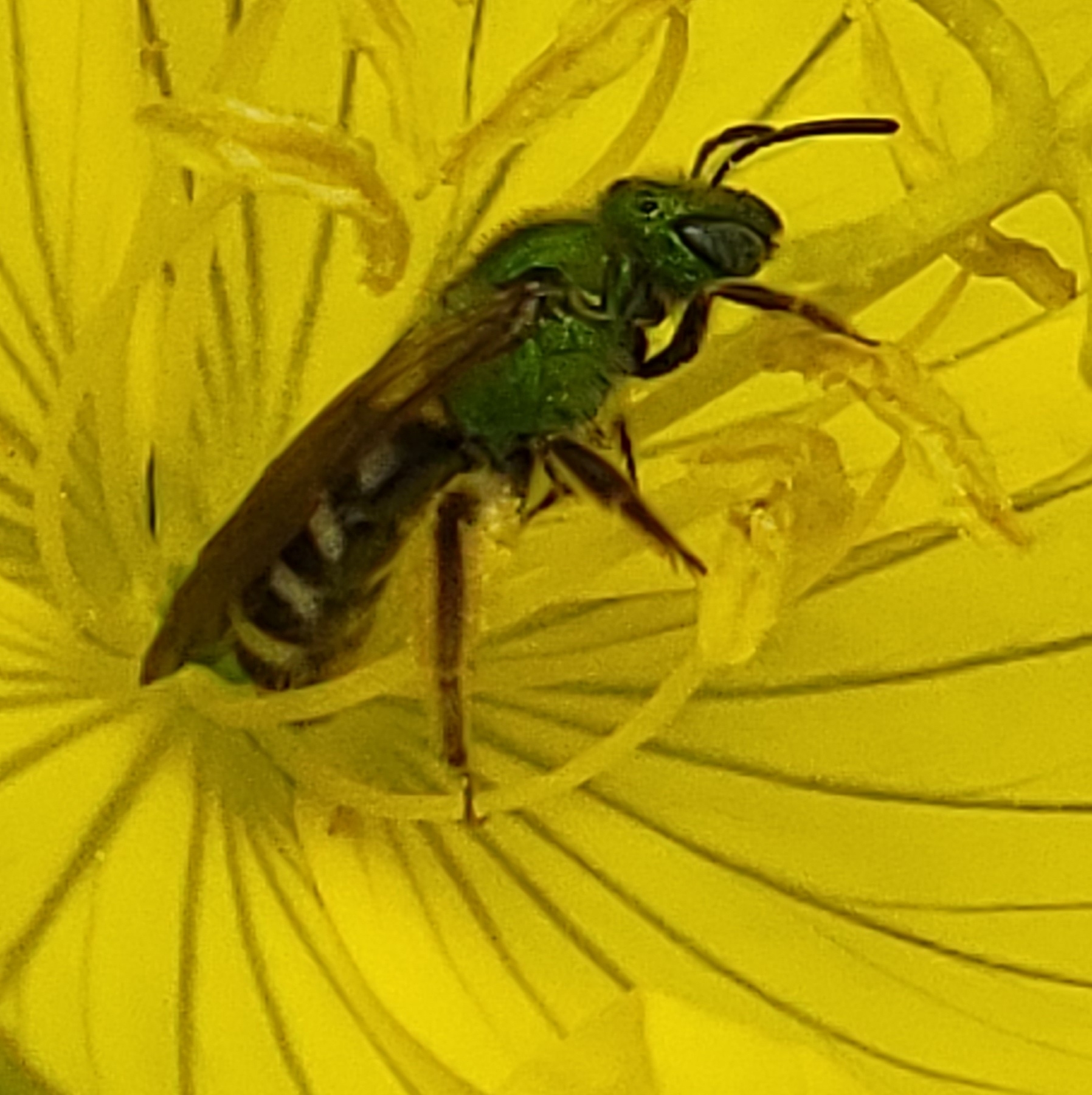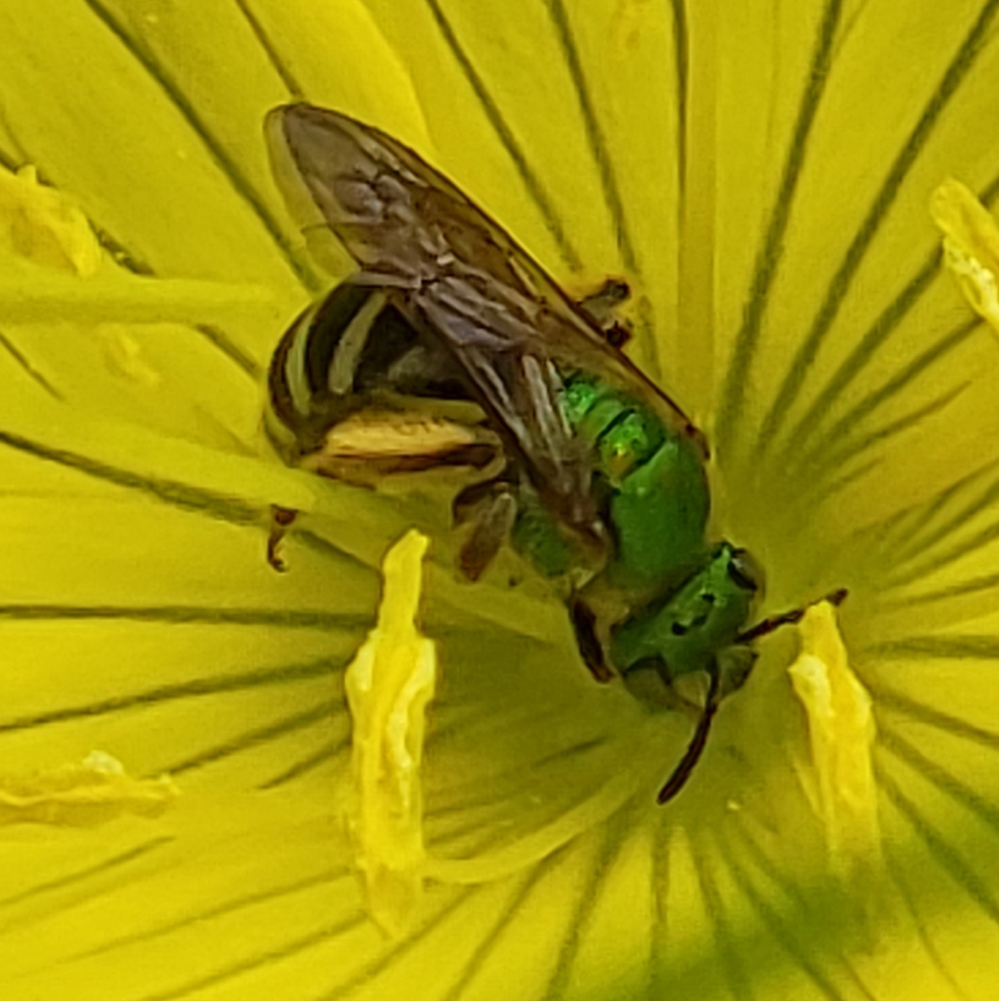 Agapostemon virescens | species | Oenothera fruticosa | species | visitsFlowersOf | Animalia | Arthropoda | Insecta | Hymenoptera | Halictidae | Agapostemon | Plantae | Tracheophyta | Magnoliopsida | Myrtales | Onagraceae | Oenothera | 40.642648 | -73.968386 | 2021 | 6 | 13 | http://creativecommons.org/licenses/by-nc/4.0/ | https://www.inaturalist.org/observations/82919630 | |