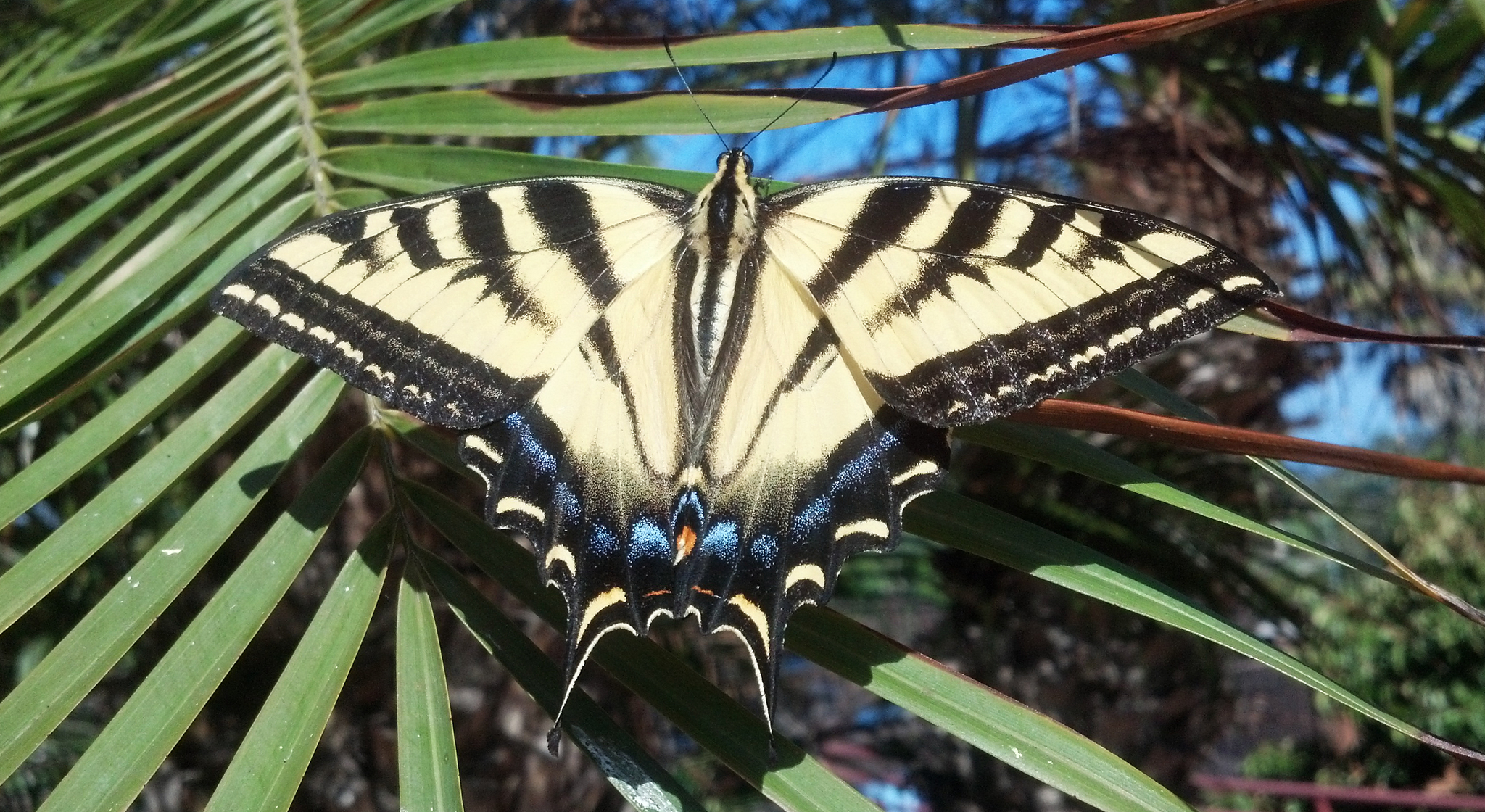 Papilio rutulus | species | Phoenix roebelenii | species | visitsFlowersOf | Animalia | Arthropoda | Insecta | Lepidoptera | Papilionidae | Papilio | Plantae | Tracheophyta | Liliopsida | Arecales | Arecaceae | Phoenix | 32.892888 | -117.242713 | 2013 | 8 | 27 | http://creativecommons.org/licenses/by-nc/4.0/ | https://www.inaturalist.org/observations/379852 | |