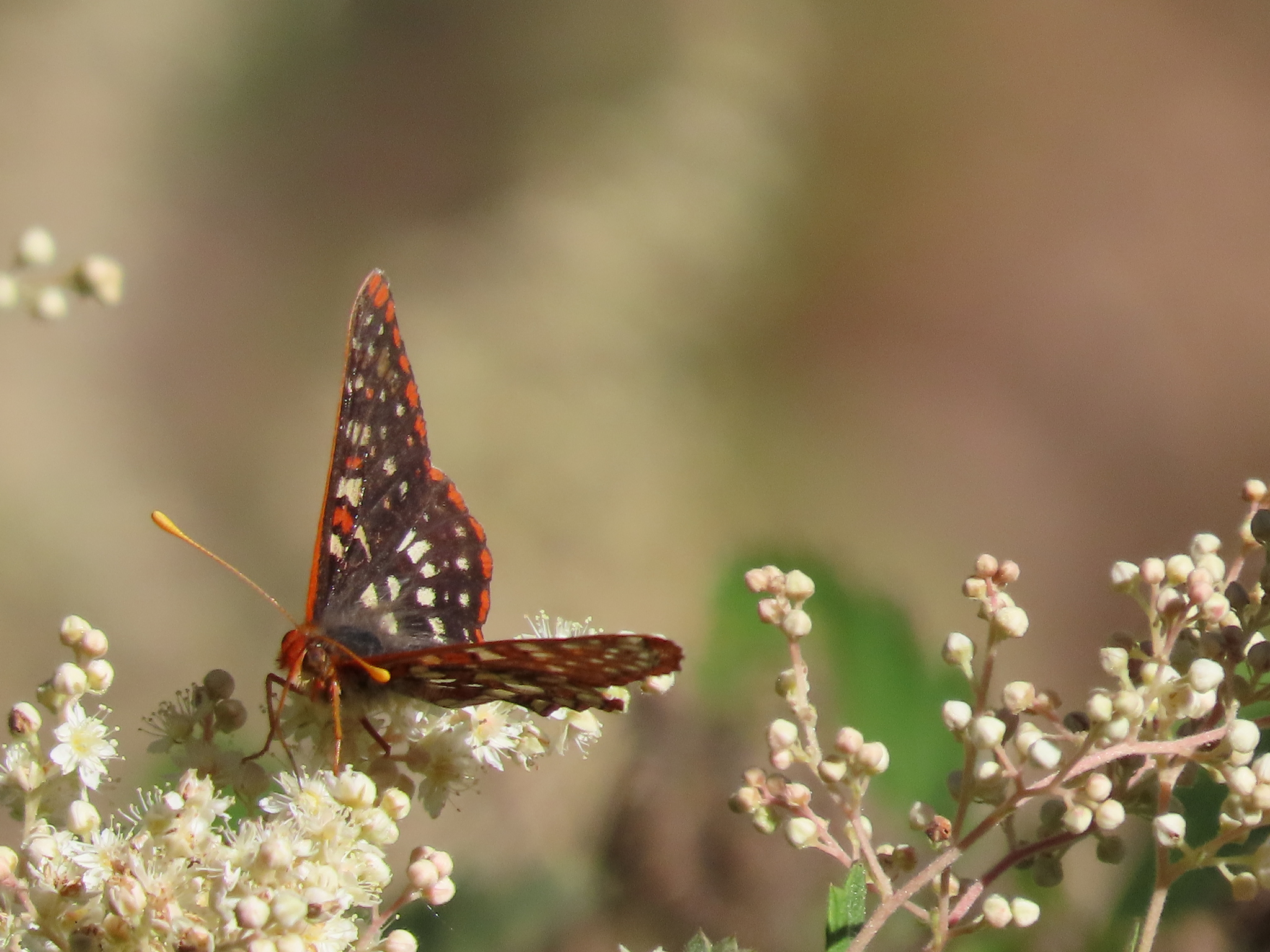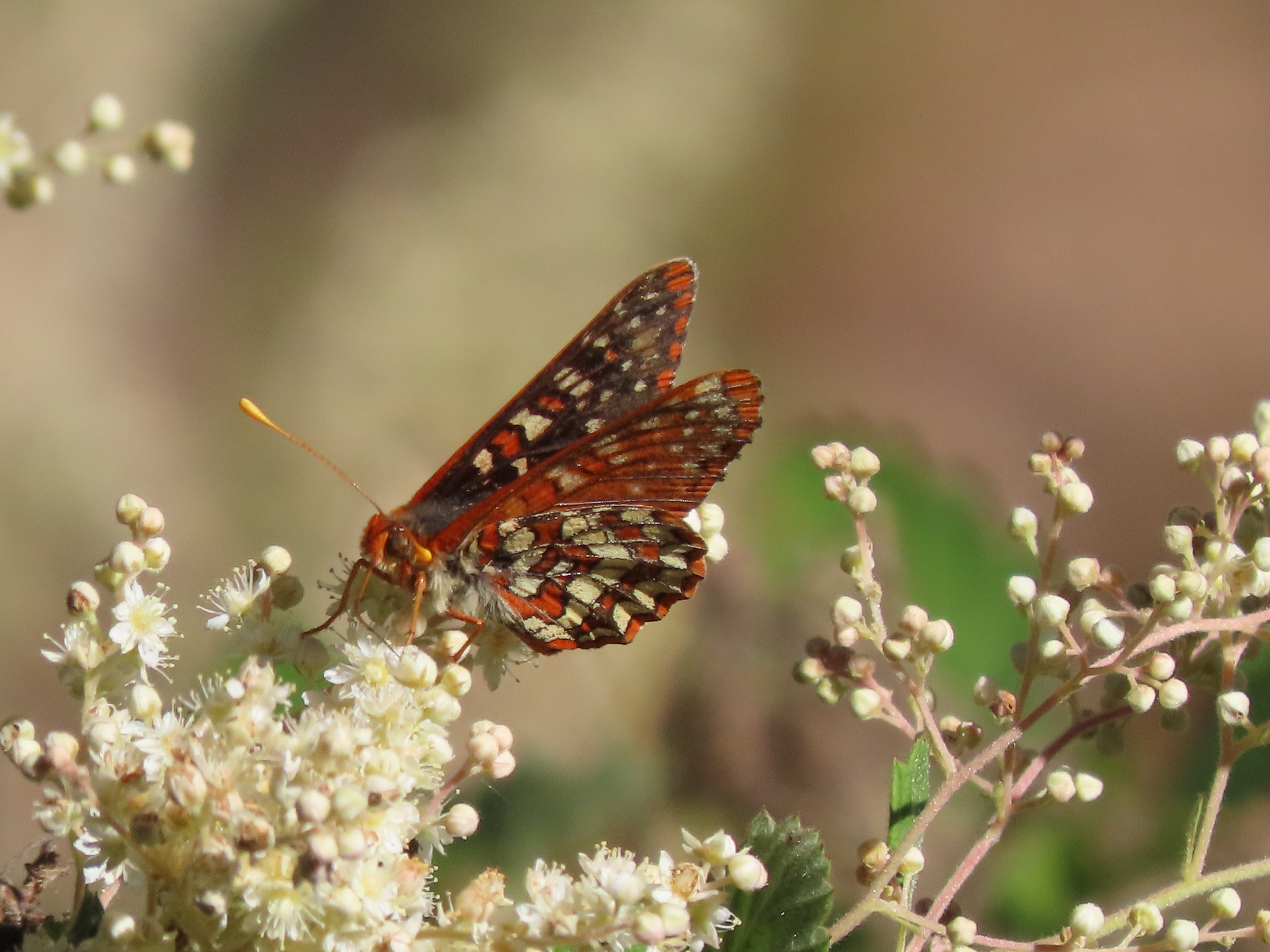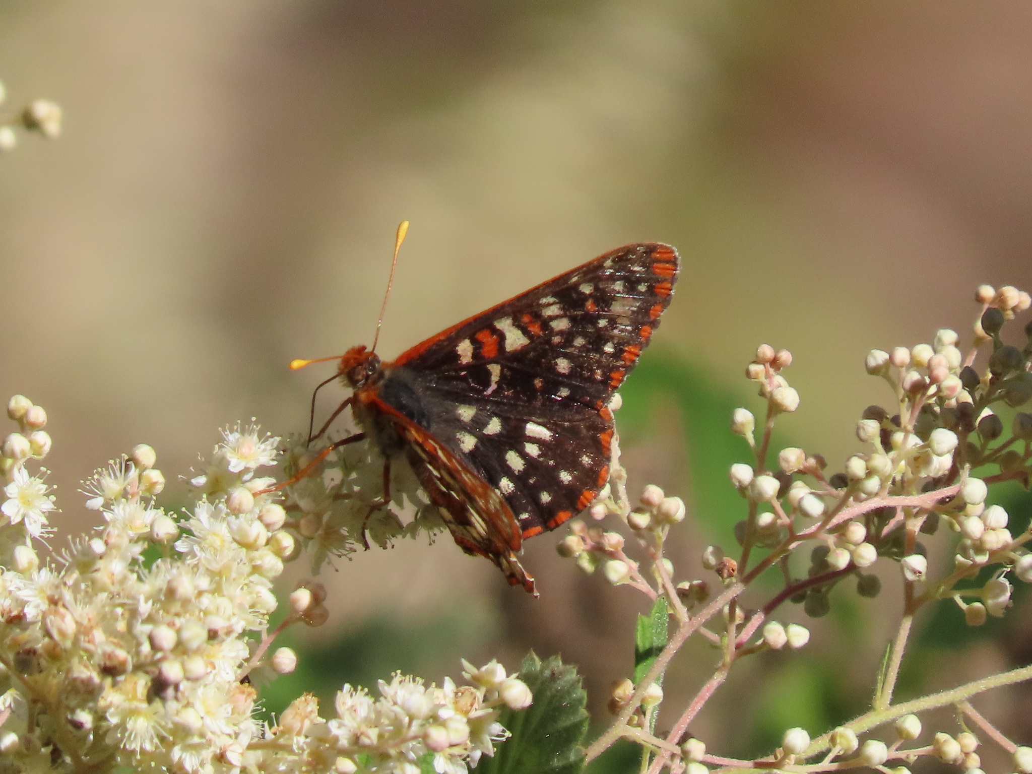 Occidryas chalcedona | species | Holodiscus discolor | species | visitsFlowersOf | Animalia | Arthropoda | Insecta | Lepidoptera | Nymphalidae | Occidryas | Plantae | Tracheophyta | Magnoliopsida | Rosales | Rosaceae | Holodiscus | 37.956404 | -122.655985 | 2021 | 6 | 12 | http://creativecommons.org/licenses/by/4.0/ | https://www.inaturalist.org/observations/82834129 | |