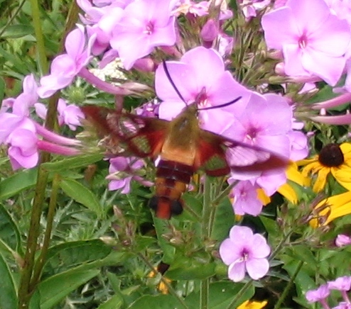 Hemaris thysbe | species | Phlox paniculata | species | visitsFlowersOf | Animalia | Arthropoda | Insecta | Lepidoptera | Sphingidae | Hemaris | Plantae | Tracheophyta | Magnoliopsida | Ericales | Polemoniaceae | Phlox | 43.132339 | -72.525467 | 2013 | 7 | 21 | http://creativecommons.org/licenses/by-nc/4.0/ | https://www.inaturalist.org/observations/340294 | |