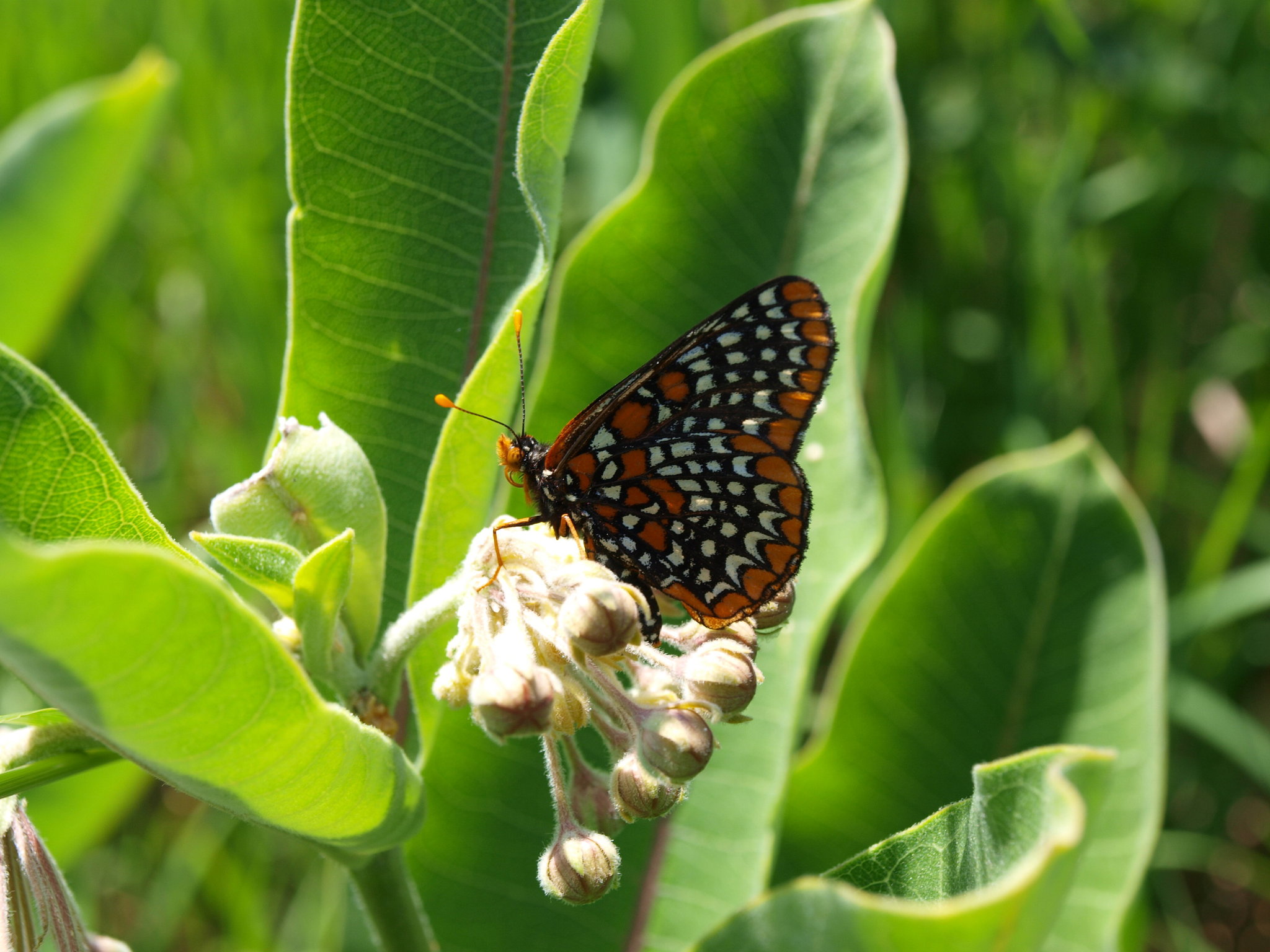 Euphydryas phaeton | species | Asclepias syriaca | species | visitsFlowersOf | Animalia | Arthropoda | Insecta | Lepidoptera | Nymphalidae | Euphydryas | Plantae | Tracheophyta | Magnoliopsida | Gentianales | Apocynaceae | Asclepias | 41.62635 | -88.518605 | 2012 | 6 | 20 | http://creativecommons.org/licenses/by-nc/4.0/ | https://www.inaturalist.org/observations/341741 | |