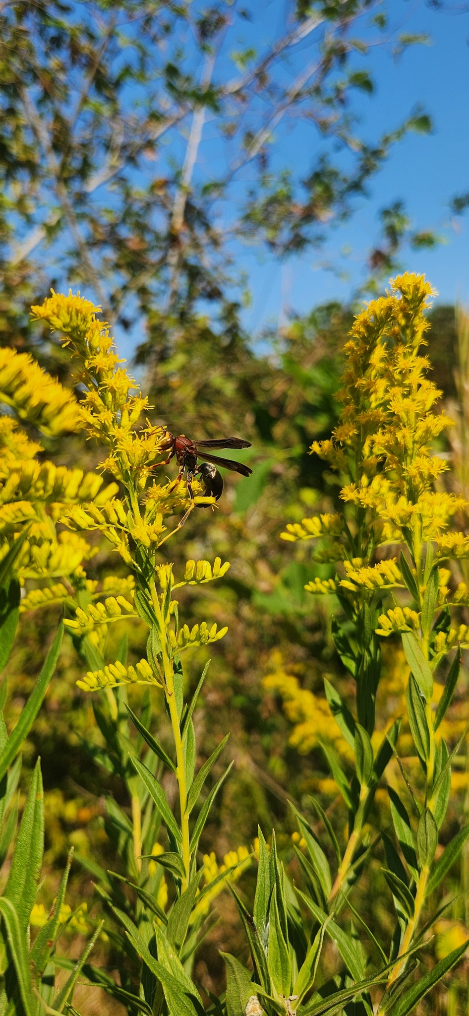 Polistes metricus | species | Solidago | genus | visits | Animalia | Arthropoda | Insecta | Hymenoptera | Eumenidae | Polistes | Plantae | Tracheophyta | Magnoliopsida | Asterales | Asteraceae | Solidago | 29.440095 | -95.224679 | 2024 | 10 | 11 | http://creativecommons.org/licenses/by-nc/4.0/ | https://www.inaturalist.org/observations/246813010 |