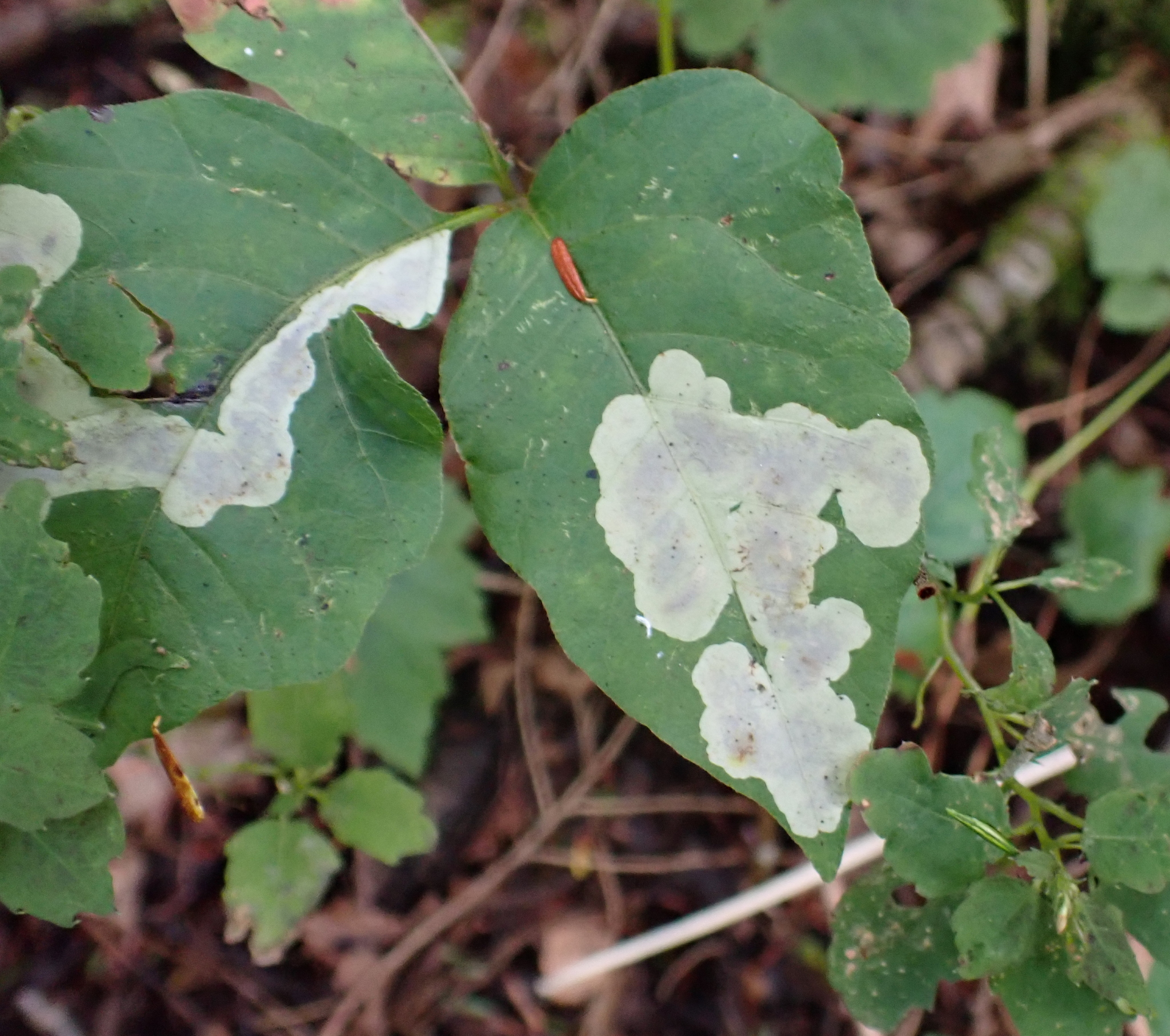 Cameraria guttifinitella | species | Toxicodendron radicans | species | interactsWith | Animalia | Arthropoda | Insecta | Lepidoptera | Gracillariidae | Cameraria | Plantae | Tracheophyta | Magnoliopsida | Sapindales | Anacardiaceae | Toxicodendron | 42.21083 | -73.2075 | 2024 | 9 | 19 | http://creativecommons.org/licenses/by/4.0/ | https://www.inaturalist.org/observations/246769855 | |