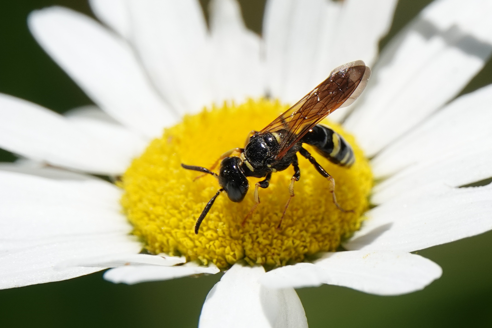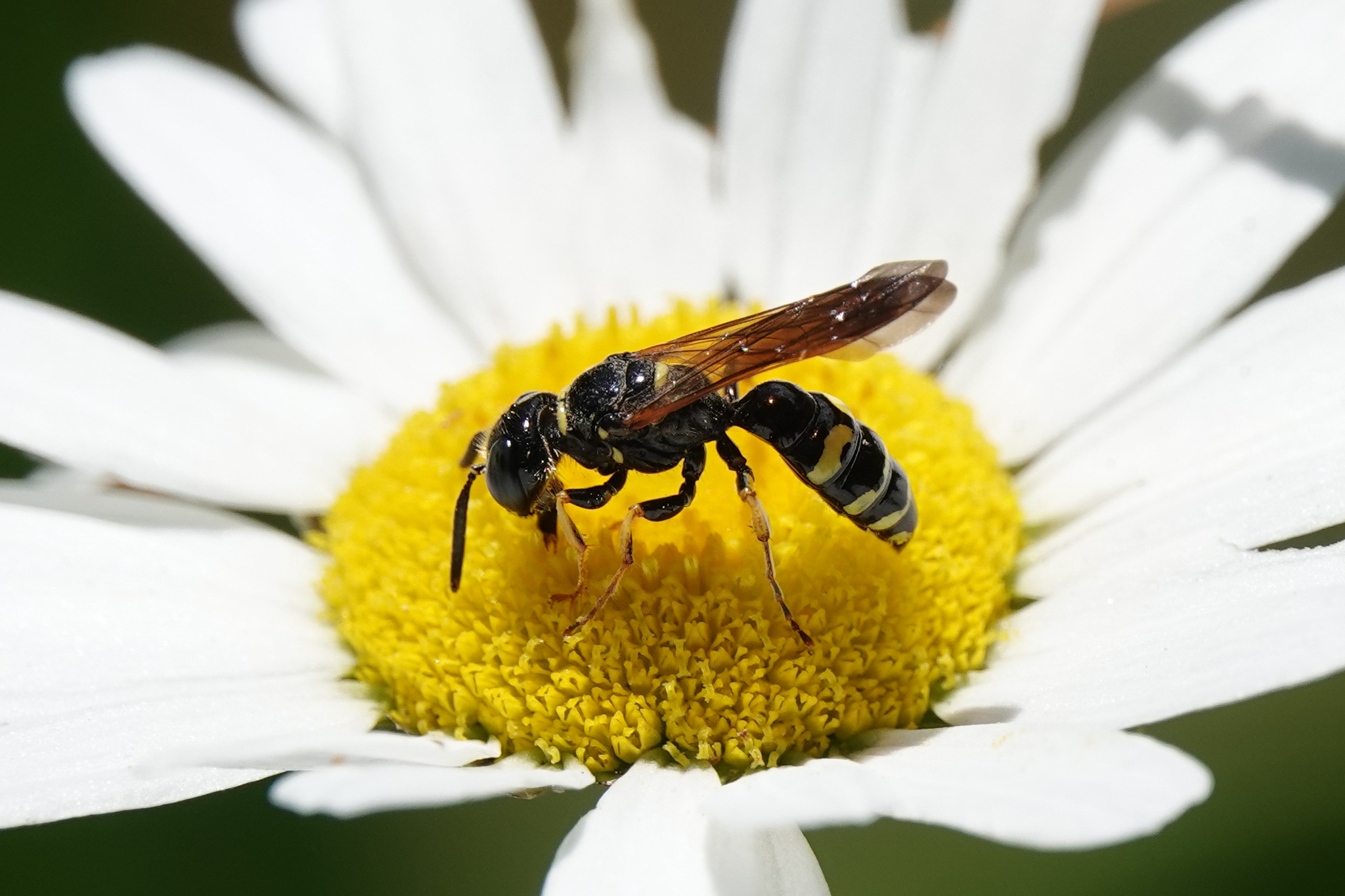 Philanthus bilunatus | species | Leucanthemum vulgare | species | visits | Animalia | Arthropoda | Insecta | Hymenoptera | Crabronidae | Philanthus | Plantae | Tracheophyta | Magnoliopsida | Asterales | Asteraceae | Leucanthemum | 38.617824 | -78.342605 | 2024 | 7 | 6 | http://creativecommons.org/licenses/by-nc/4.0/ | https://www.inaturalist.org/observations/246703290 |