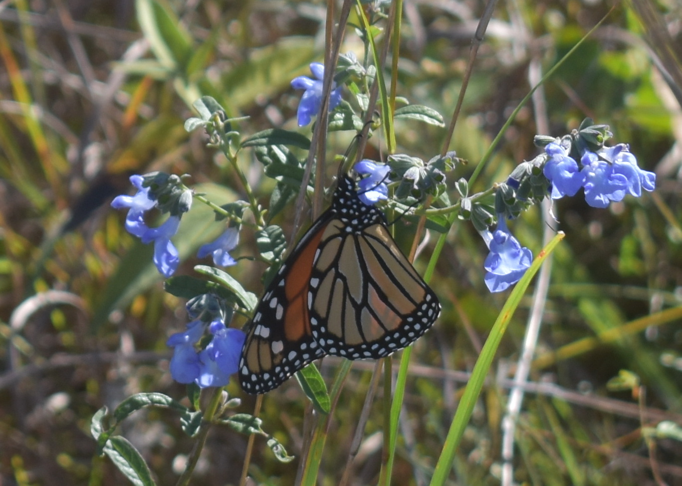 Danaus plexippus | species | Salvia azurea | species | interactsWith | Animalia | Arthropoda | Insecta | Lepidoptera | Nymphalidae | Danaus | Plantae | Tracheophyta | Magnoliopsida | Lamiales | Lamiaceae | Salvia | 34.549991 | -87.04405 | 2024 | 10 | 9 | http://creativecommons.org/licenses/by-nc/4.0/ | https://www.inaturalist.org/observations/246721466 | |
