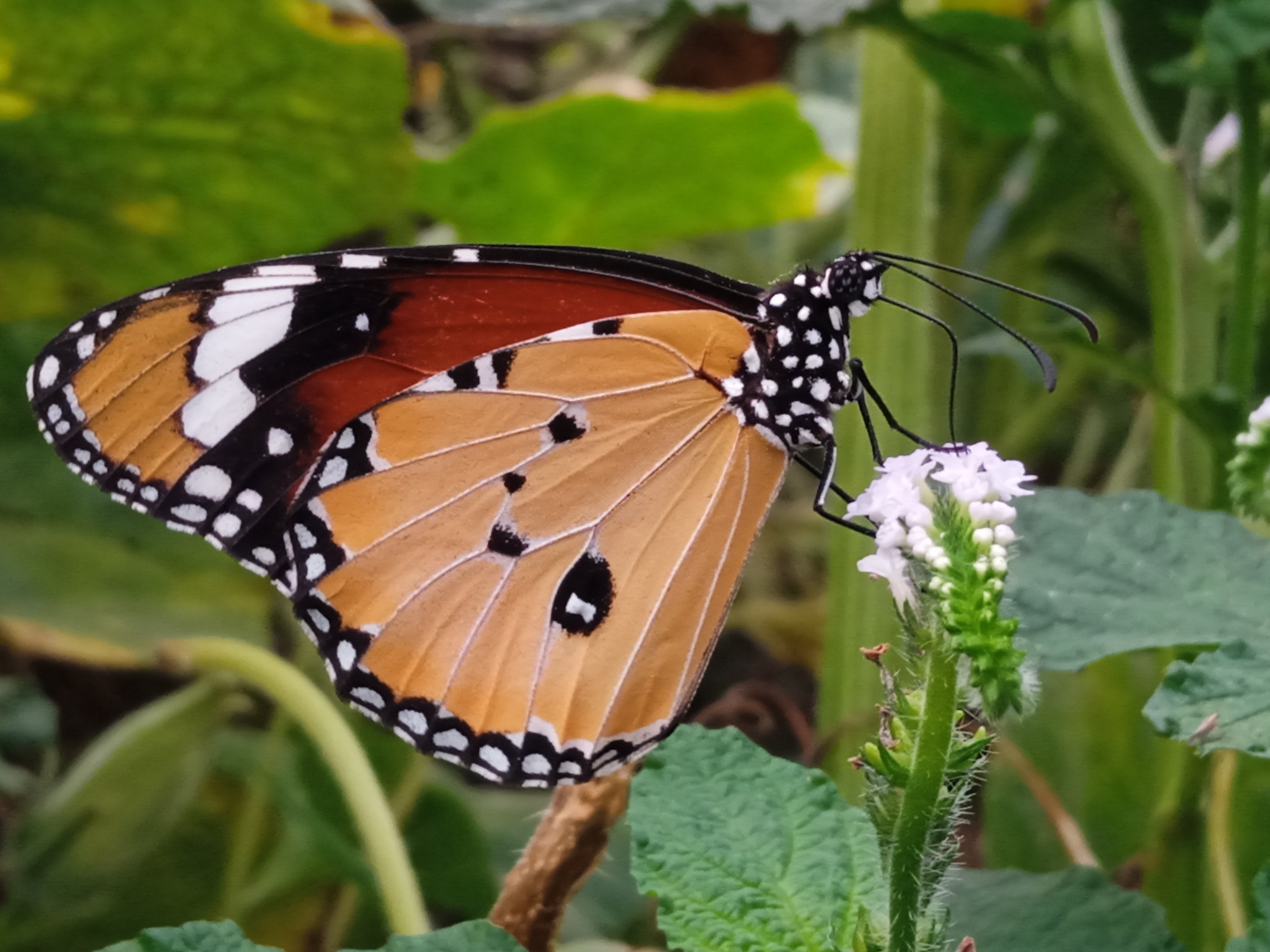 Danaus chrysippus | species | Heliotropium indicum | species | eats | Animalia | Arthropoda | Insecta | Lepidoptera | Nymphalidae | Danaus | Plantae | Tracheophyta | Magnoliopsida | Boraginales | Heliotropiaceae | Heliotropium | 25.213798 | 75.864753 | 2024 | 10 | 11 | http://creativecommons.org/licenses/by-nc/4.0/ | https://www.inaturalist.org/observations/246721382 | |