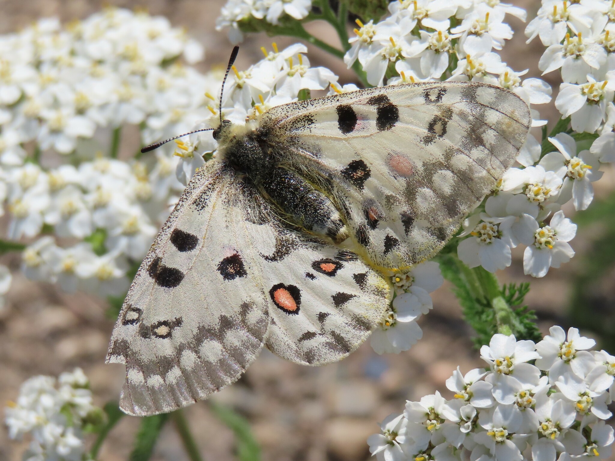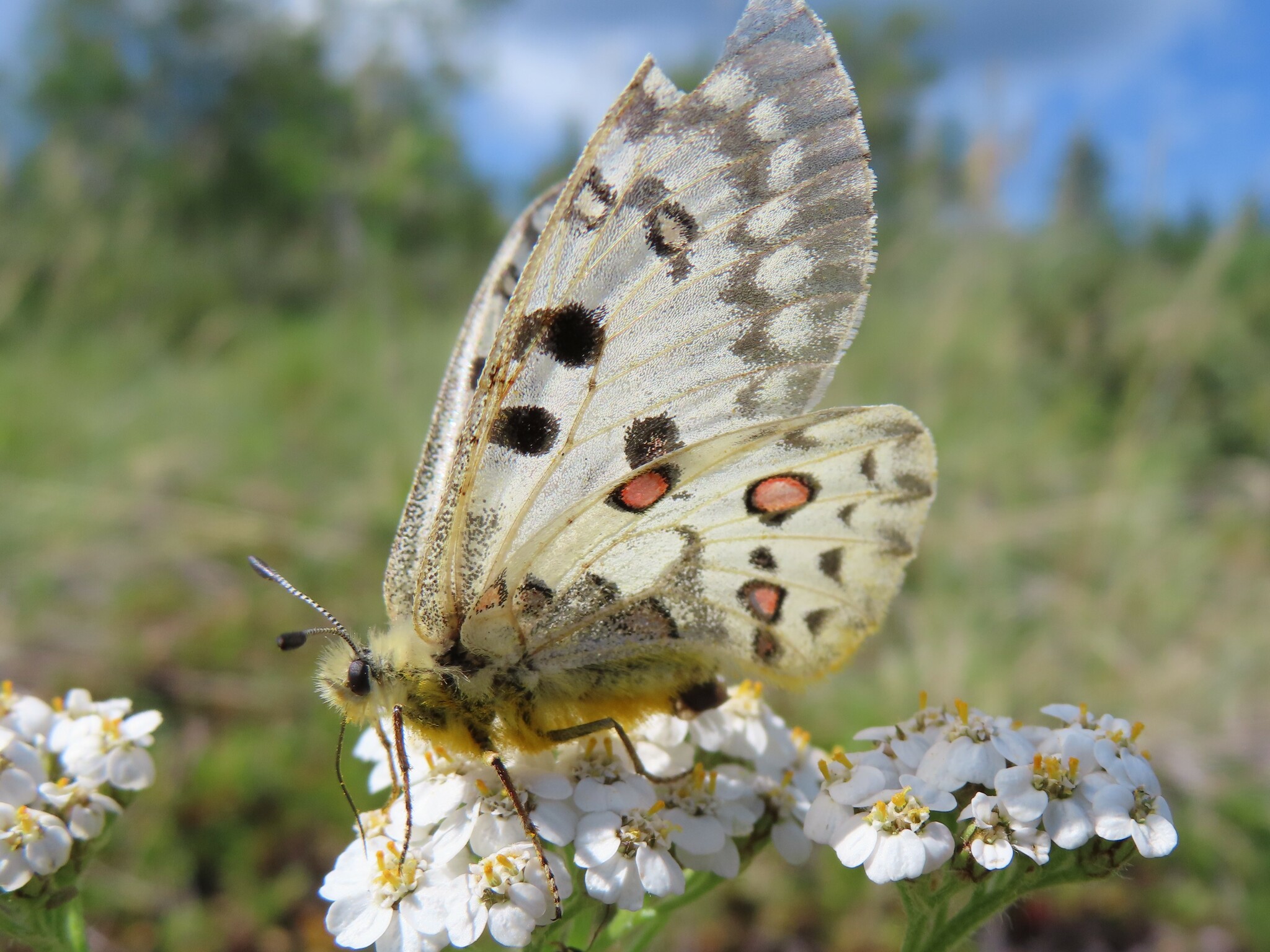 Parnassius smintheus | species | Achillea millefolium | species | interactsWith | Animalia | Arthropoda | Insecta | Lepidoptera | Papilionidae | Parnassius | Plantae | Tracheophyta | Magnoliopsida | Asterales | Asteraceae | Achillea | 60.821066 | -135.974116 | 2024 | 6 | 29 | http://creativecommons.org/licenses/by-nc/4.0/ | https://www.inaturalist.org/observations/246736238 | |