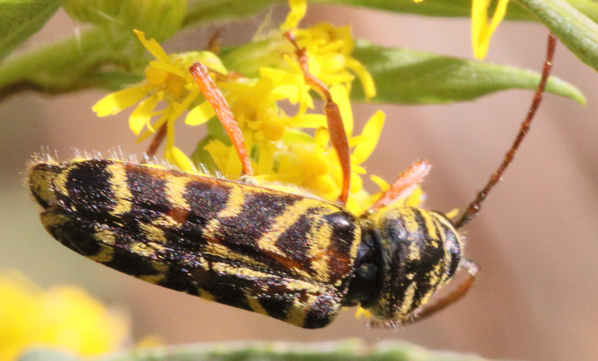 Megacyllene robiniae | species | Solidago | genus | visitsFlowersOf | Animalia | Arthropoda | Insecta | Coleoptera | Cerambycidae | Megacyllene | Plantae | Tracheophyta | Magnoliopsida | Asterales | Asteraceae | Solidago | 41.654255 | -91.493109 | 2024 | 10 | 10 | http://creativecommons.org/licenses/by-nc/4.0/ | https://www.inaturalist.org/observations/246693792 | |