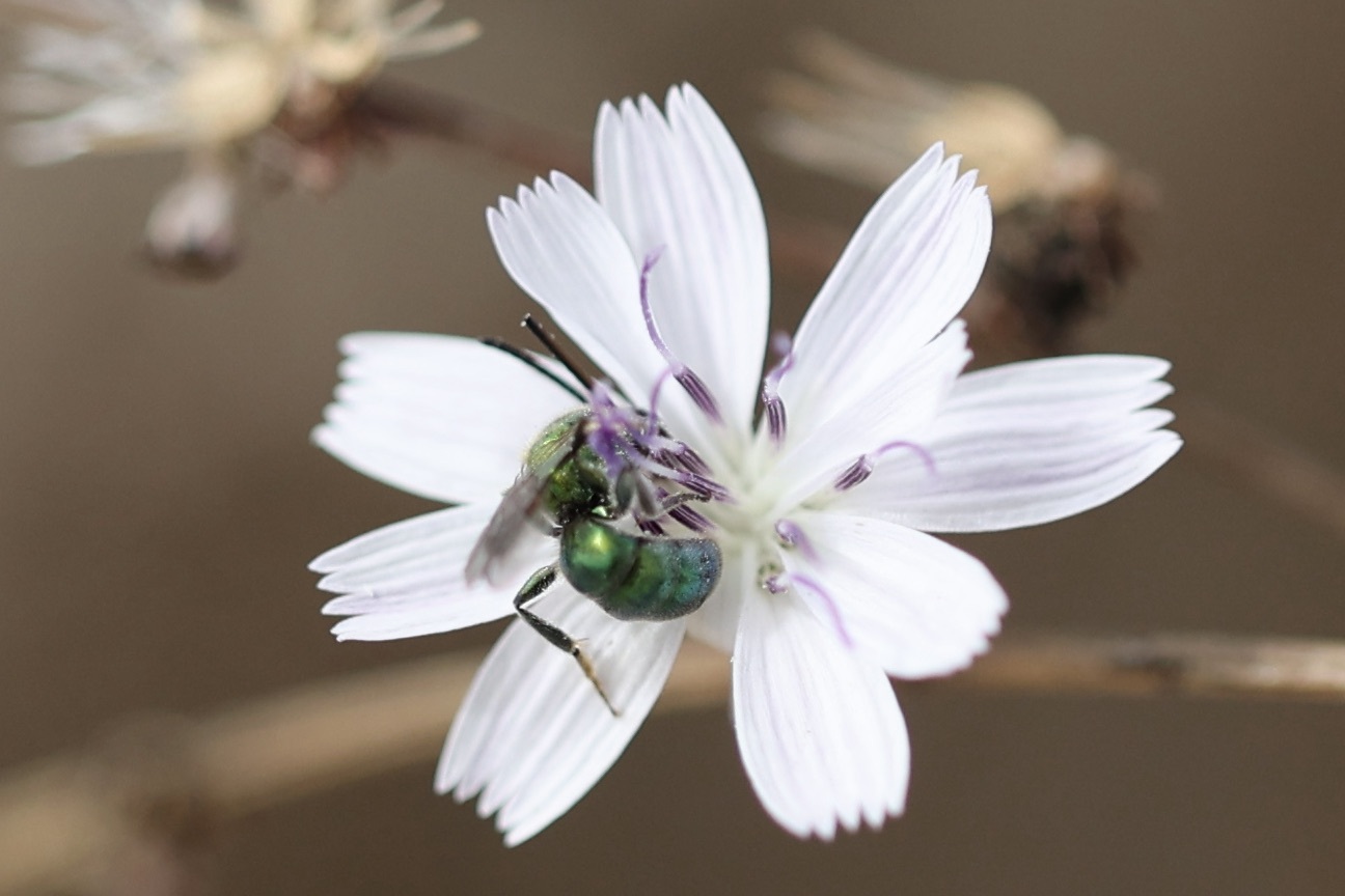 Augochlorella pomoniella | species | Stephanomeria | genus | visitsFlowersOf | Animalia | Arthropoda | Insecta | Hymenoptera | Halictidae | Augochlorella | Plantae | Tracheophyta | Magnoliopsida | Asterales | Asteraceae | Stephanomeria | 32.671244 | -117.244505 | 2024 | 10 | 9 | http://creativecommons.org/licenses/by-nc/4.0/ | https://www.inaturalist.org/observations/246688115 | |
