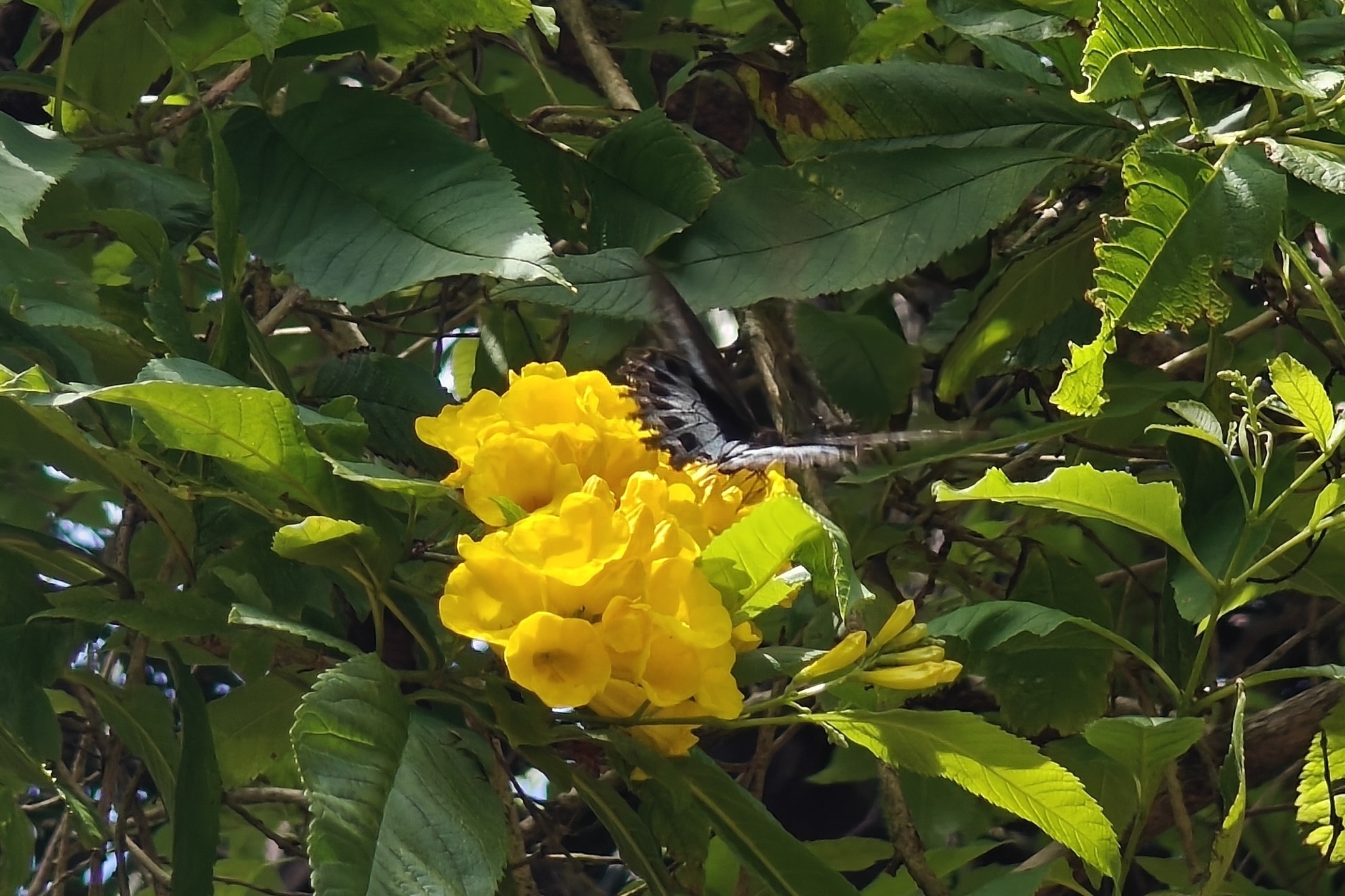 Papilio polymnestor | species | Tecoma stans | species | eats | Animalia | Arthropoda | Insecta | Lepidoptera | Papilionidae | Papilio | Plantae | Tracheophyta | Magnoliopsida | Lamiales | Bignoniaceae | Tecoma | 12.22465 | 75.648817 | 2024 | 10 | 8 | http://creativecommons.org/licenses/by-nc/4.0/ | https://www.inaturalist.org/observations/246627832 | |