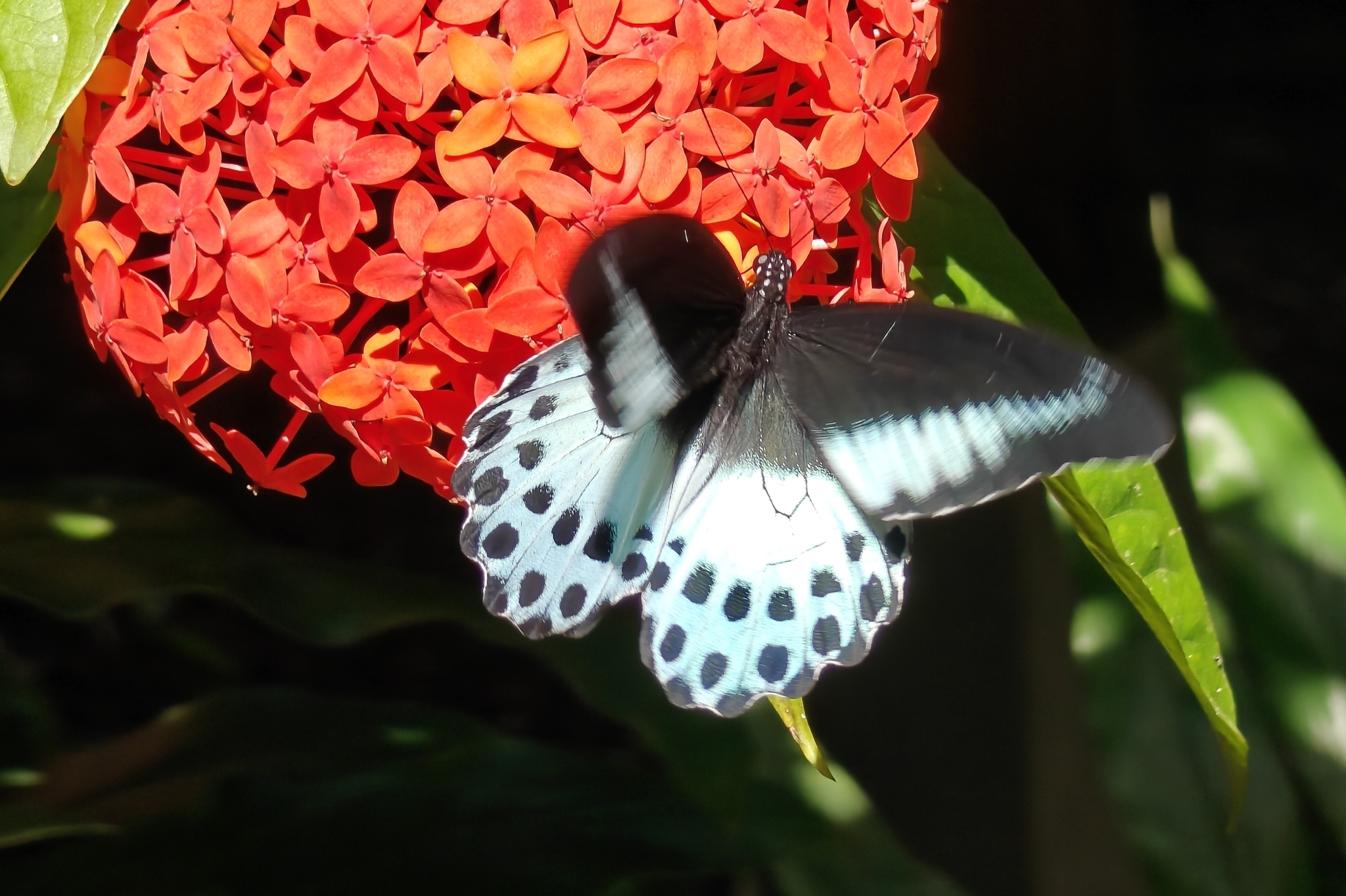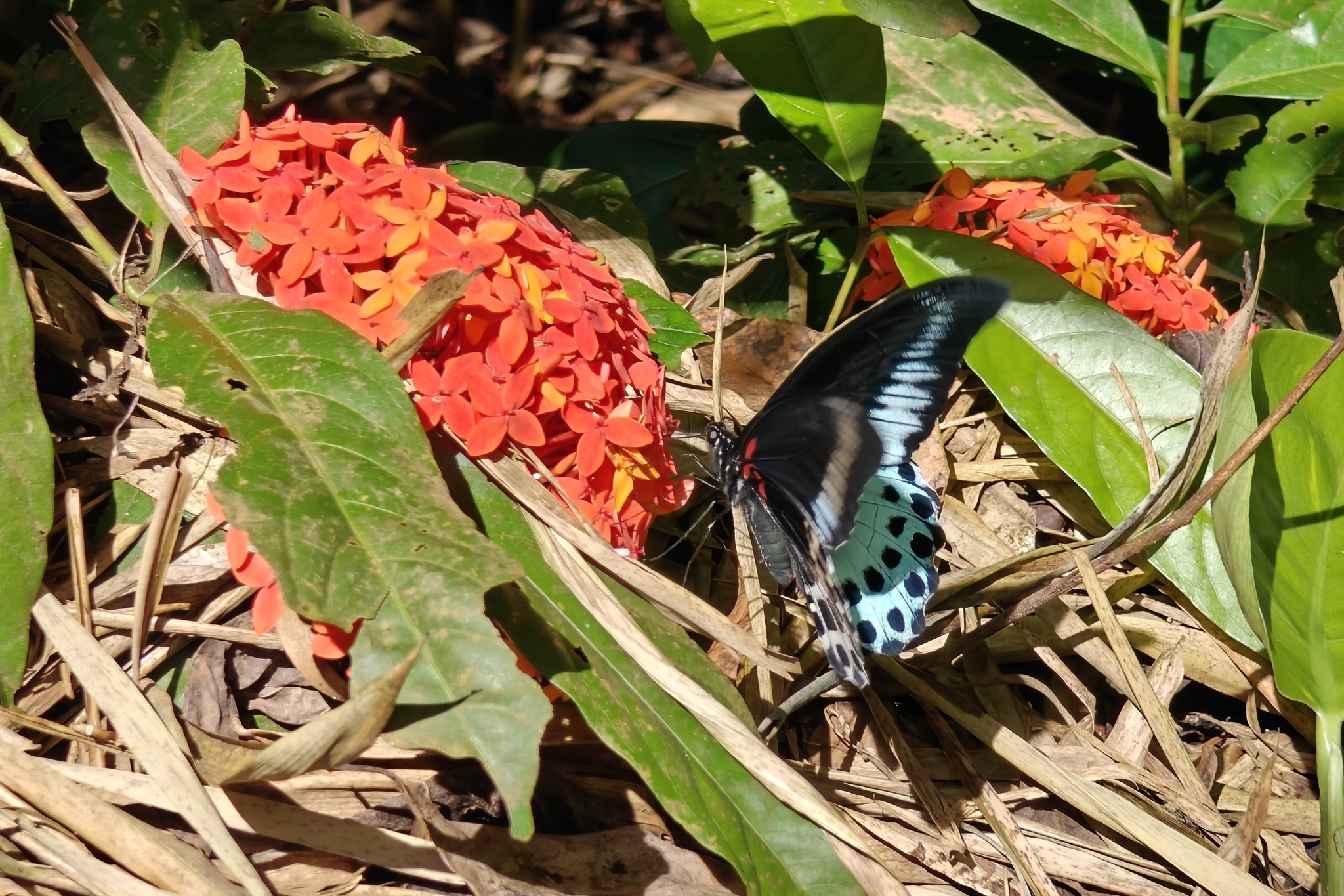 Papilio polymnestor | species | Ixora casei | species | eats | Animalia | Arthropoda | Insecta | Lepidoptera | Papilionidae | Papilio | Plantae | Tracheophyta | Magnoliopsida | Gentianales | Rubiaceae | Ixora | 12.225459 | 75.648487 | 2024 | 10 | 8 | http://creativecommons.org/licenses/by-nc/4.0/ | https://www.inaturalist.org/observations/246627998 | |