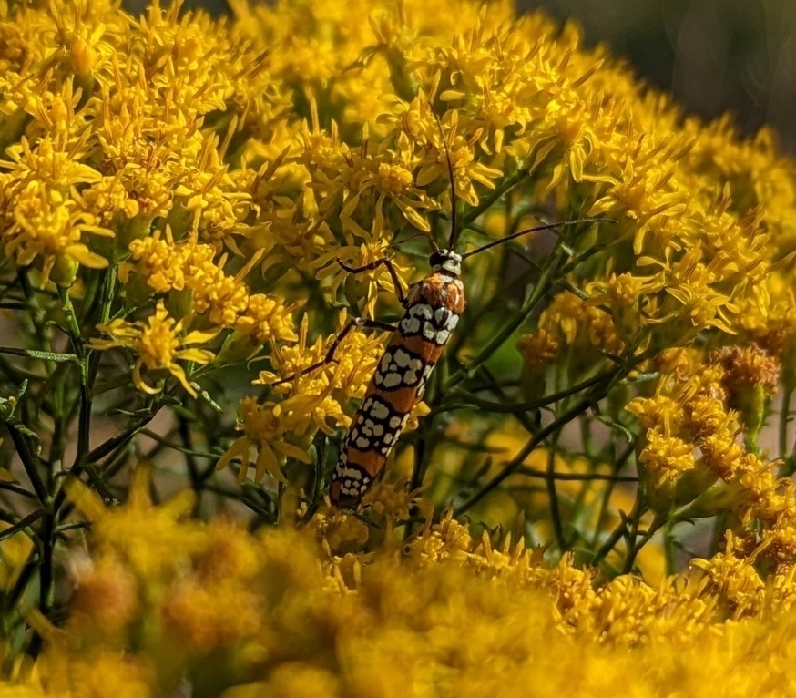Atteva punctella | species | Euthamia | genus | interactsWith | Animalia | Arthropoda | Insecta | Lepidoptera | Attevidae | Atteva | Plantae | Tracheophyta | Magnoliopsida | Asterales | Asteraceae | Euthamia | 30.71217 | -89.127334 | 2024 | 10 | 10 | http://creativecommons.org/licenses/by-nc/4.0/ | https://www.inaturalist.org/observations/246636860 | |