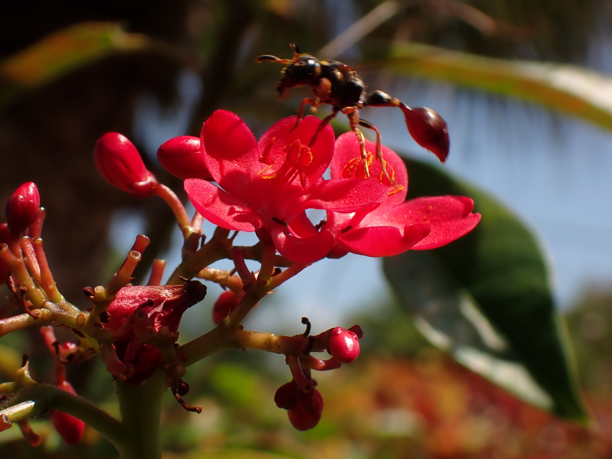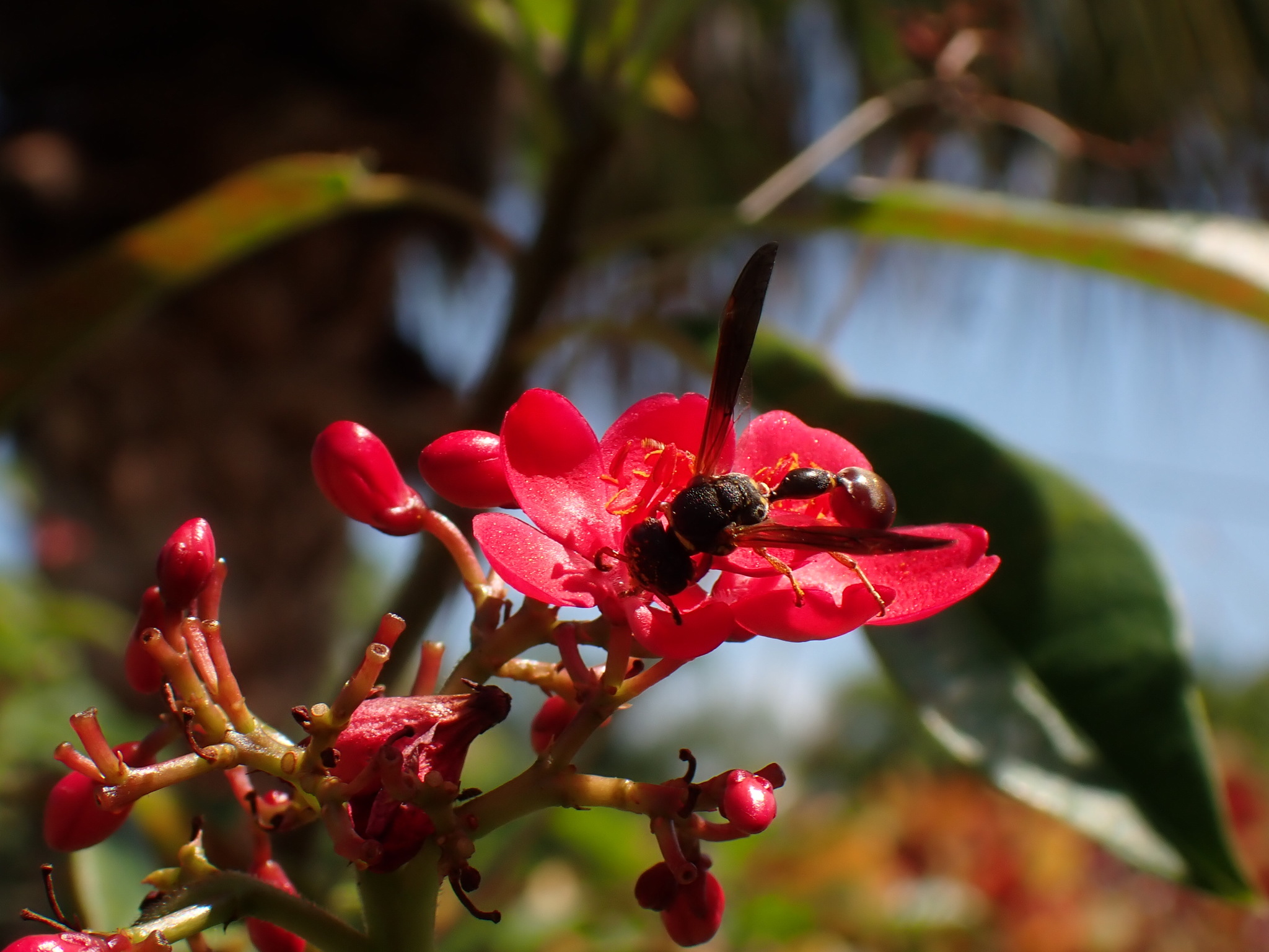 Zethus slossonae | species | Jatropha integerrima | species | visitsFlowersOf | Animalia | Arthropoda | Insecta | Hymenoptera | Eumenidae | Zethus | Plantae | Tracheophyta | Magnoliopsida | Malpighiales | Euphorbiaceae | Jatropha | 27.438181 | -82.684063 | 2021 | 6 | 12 | http://creativecommons.org/licenses/by-nc/4.0/ | https://www.inaturalist.org/observations/82760267 | |