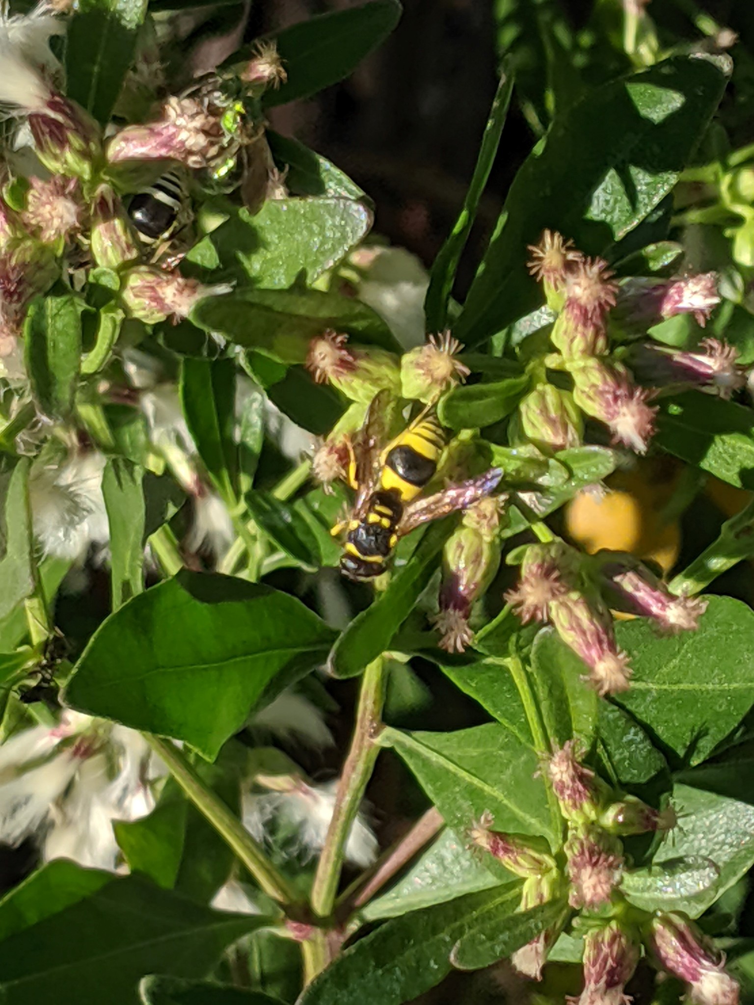 Ancistrocerus gazella | species | Baccharis halimifolia | species | visitsFlowersOf | Animalia | Arthropoda | Insecta | Hymenoptera | Vespidae | Ancistrocerus | Plantae | Tracheophyta | Magnoliopsida | Asterales | Asteraceae | Baccharis | 42.447644 | -76.475717 | 2019 | 10 | 19 | http://creativecommons.org/licenses/by-nc/4.0/ | https://www.inaturalist.org/observations/82762092 | |