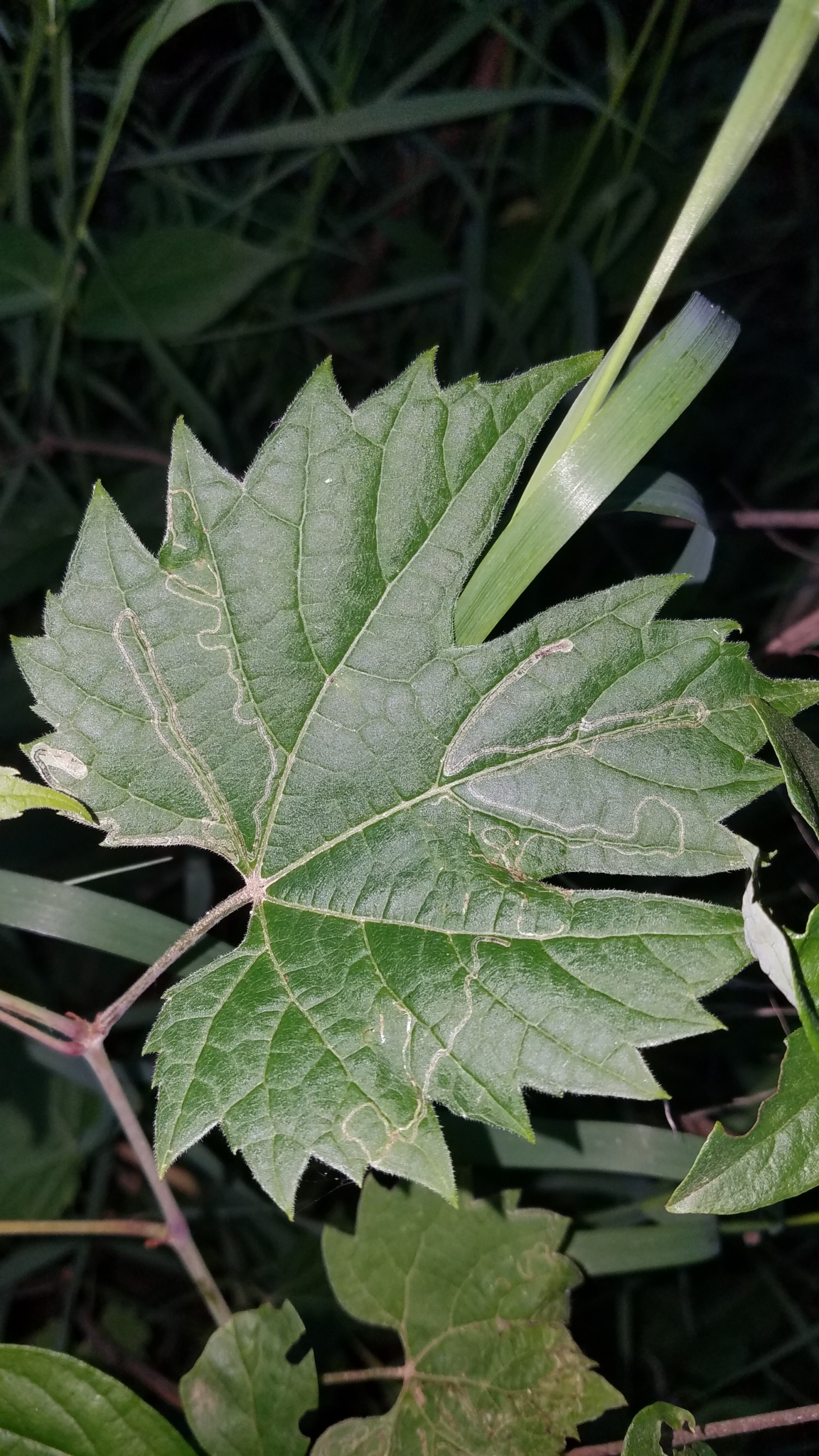 Phyllocnistis vitifoliella | species | Vitis | genus | interactsWith | Animalia | Arthropoda | Insecta | Lepidoptera | Gracillariidae | Phyllocnistis | Plantae | Tracheophyta | Magnoliopsida | Vitales | Vitaceae | Vitis | 42.768037 | -76.984866 | 2021 | 6 | 12 | http://creativecommons.org/licenses/by-nc/4.0/ | https://www.inaturalist.org/observations/82768243 | |