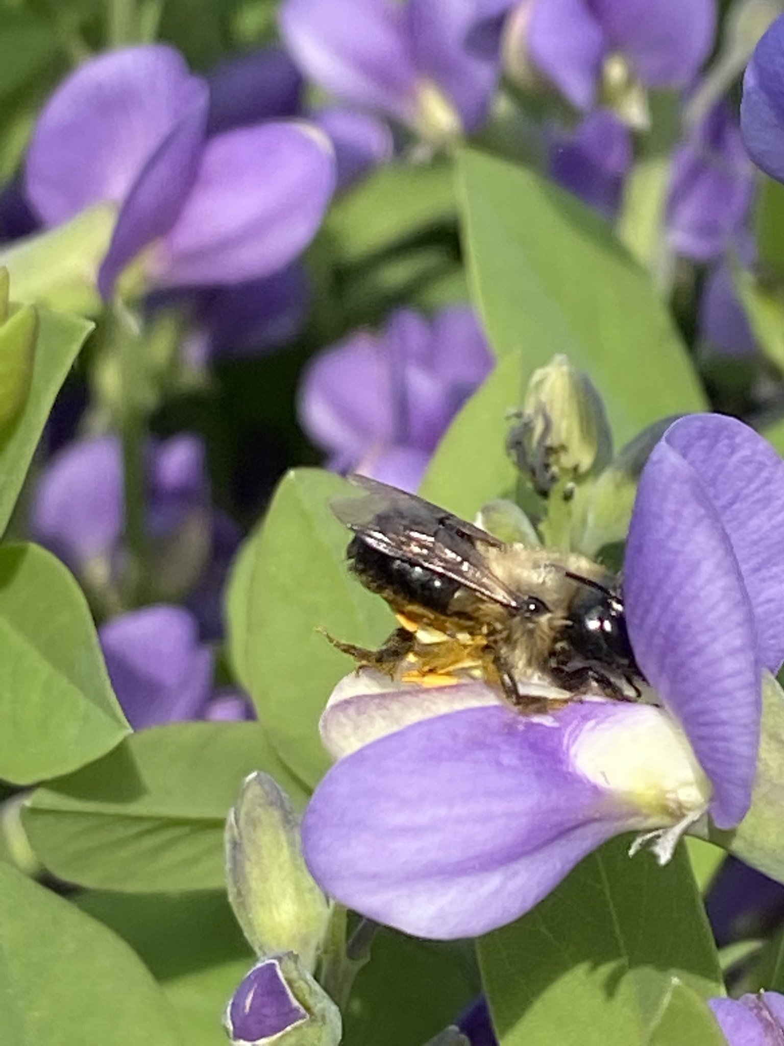 Osmia bucephala | species | Baptisia australis | species | visitsFlowersOf | Animalia | Arthropoda | Insecta | Hymenoptera | Megachilidae | Osmia | Plantae | Tracheophyta | Magnoliopsida | Fabales | Fabaceae | Baptisia | 44.809678 | -72.199088 | 2021 | 6 | 12 | http://creativecommons.org/licenses/by-nc/4.0/ | https://www.inaturalist.org/observations/82669253 | |