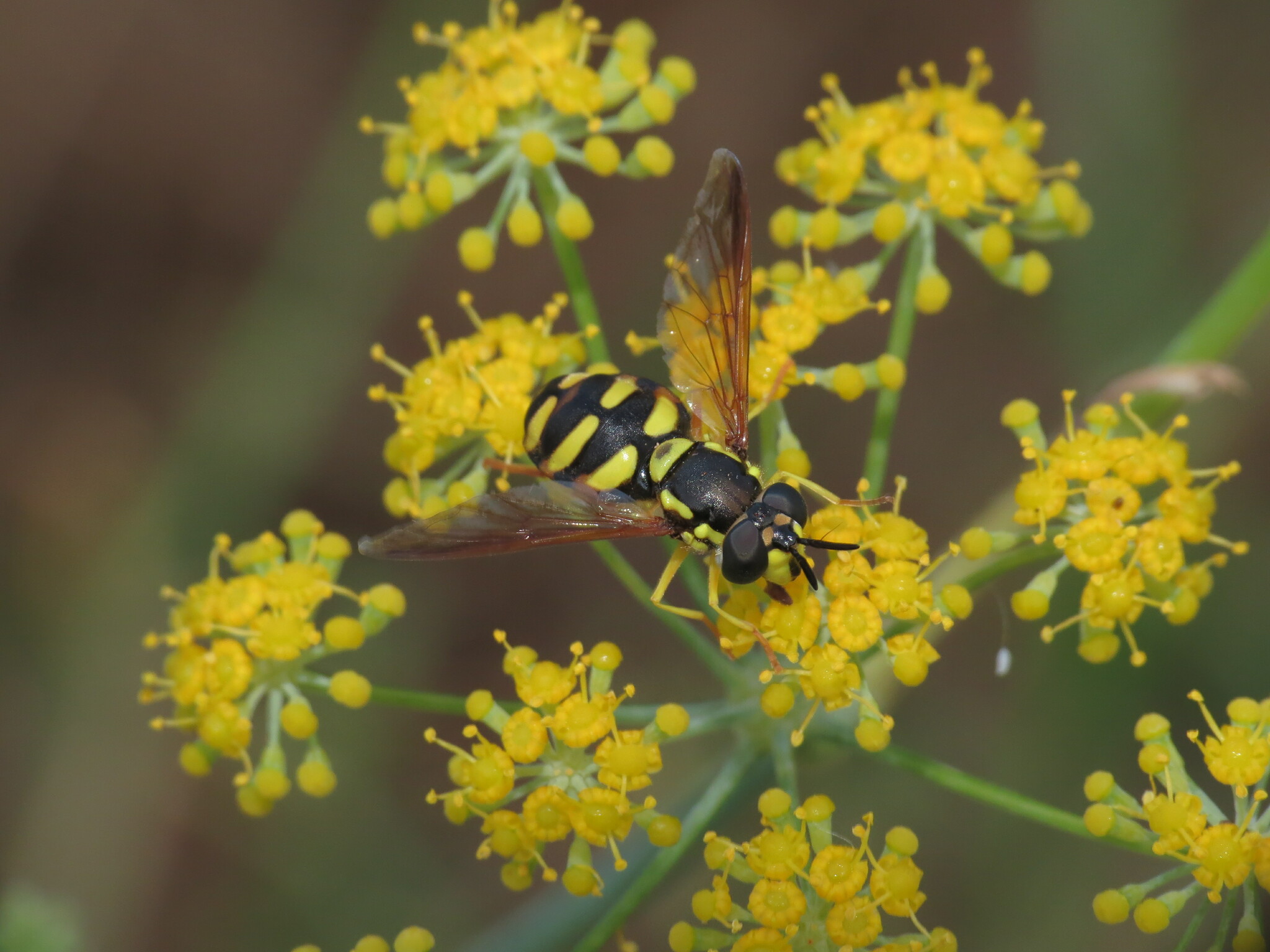 Chrysotoxum intermedium | species | Foeniculum vulgare | species | visitsFlowersOf | Animalia | Arthropoda | Insecta | Diptera | Syrphidae | Chrysotoxum | Plantae | Tracheophyta | Magnoliopsida | Apiales | Apiaceae | Foeniculum | 40.390234 | -7.868343 | 2018 | 8 | 18 | http://creativecommons.org/licenses/by-nc/4.0/ | https://www.inaturalist.org/observations/164692051 | |
